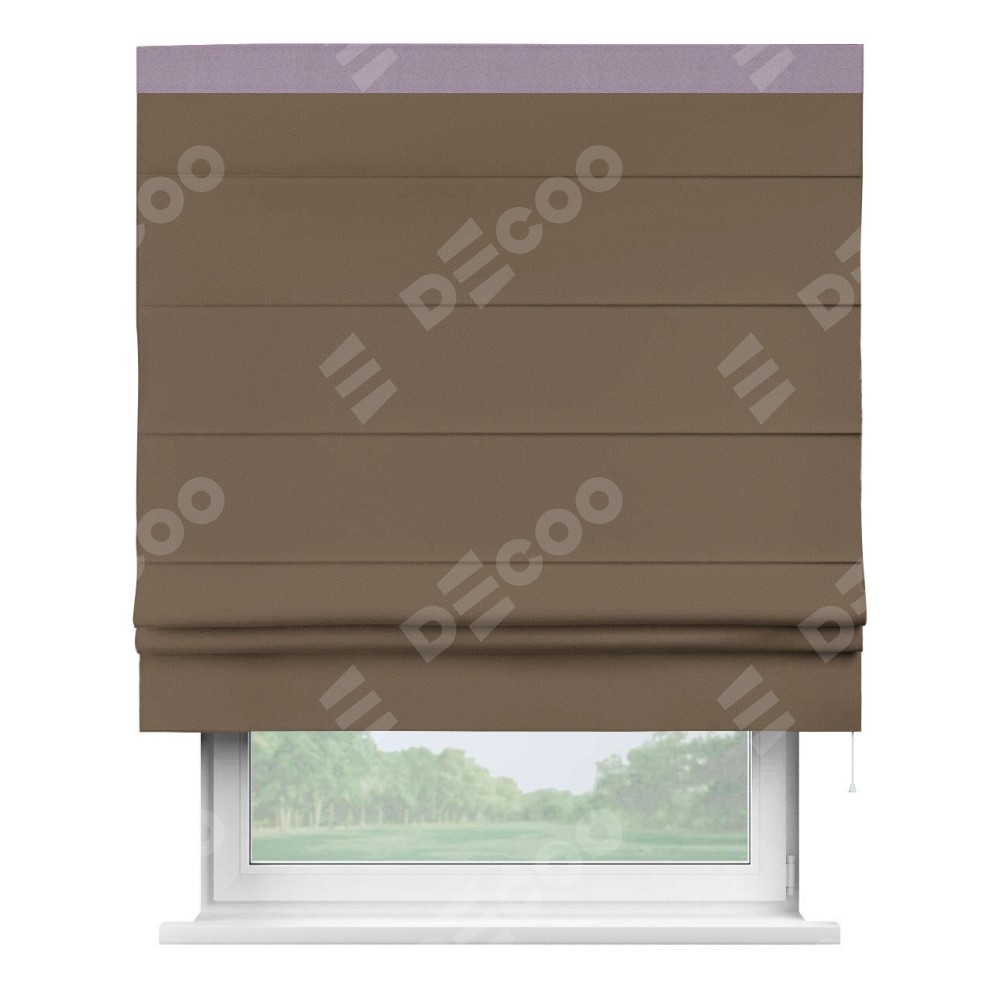 Римская штора «Кортин» для проема, блэкаут однотонный коричневый с кантом Кинг