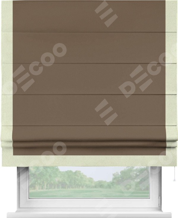 Римская штора «Кортин» для проема, блэкаут однотонный коричневый с кантом Виктория