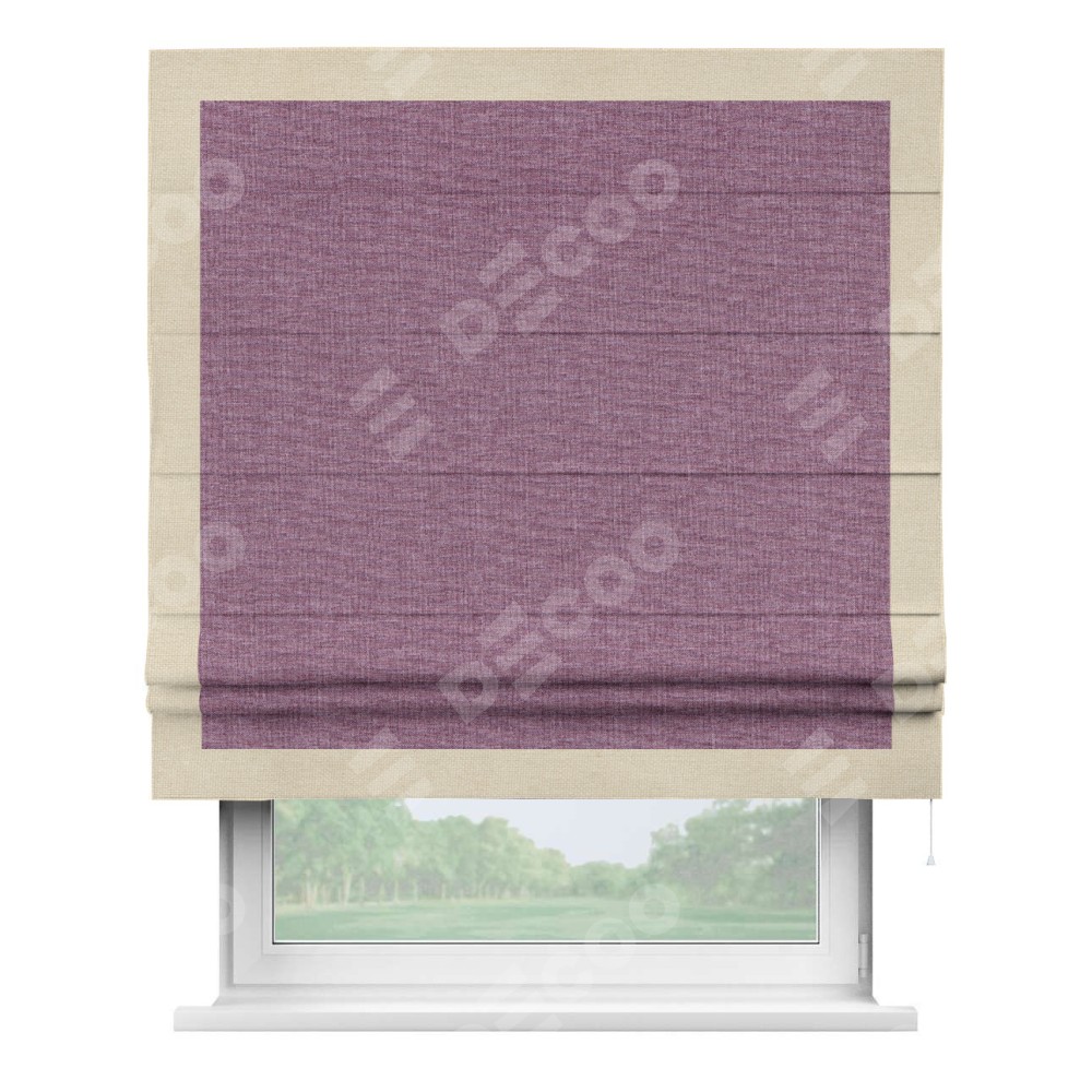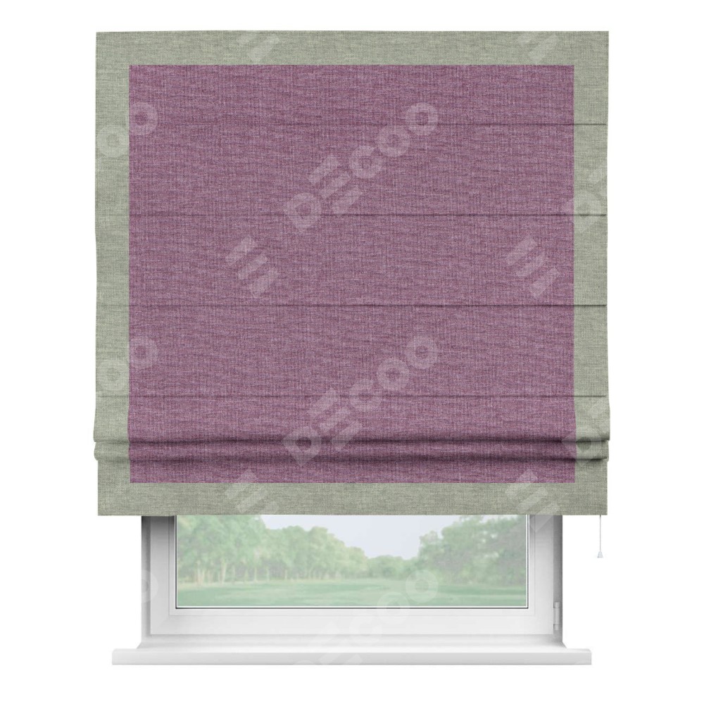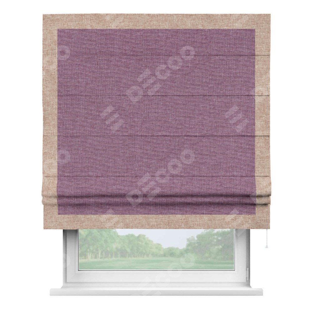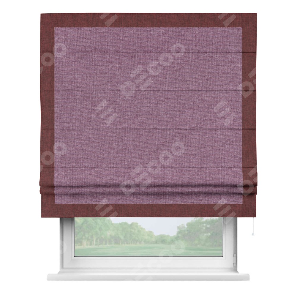 Римская штора «Кортин» с кантом Чесс, для проема, ткань лён кашемир сиреневый