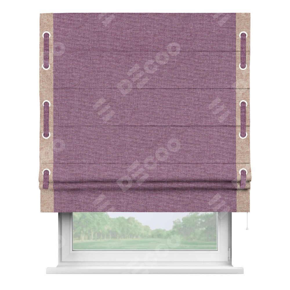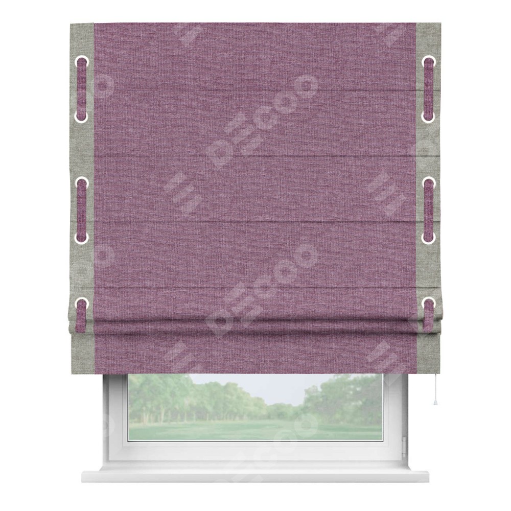 Римская штора «Кортин» с кантом Стрим Дуо (люверсы с пояском), для проема, ткань лён кашемир сиреневый