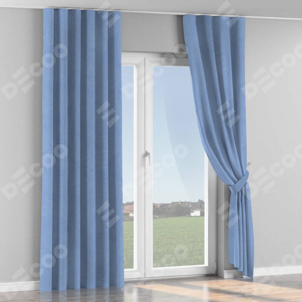 Комплект прямых штор, от производителя «Cortin», пошиты из ткани вельвет васильковый, артикул ткани 33799. С изнаночной стороны в верхней части штор пристрачивается шторная лента с декоративными складками «Волна». Для создания элегантных складок прямые шторы шьются по стандарту с коэффициентом 1:2 (на 100 см. ширины проёма 200 см. ширины ткани).