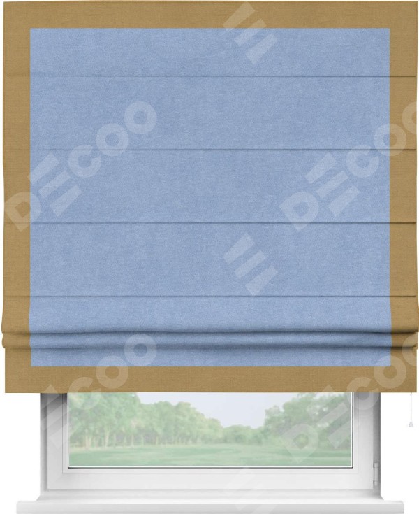 Римская штора «Кортин» для проема, вельвет васильковый с кантом Чесс