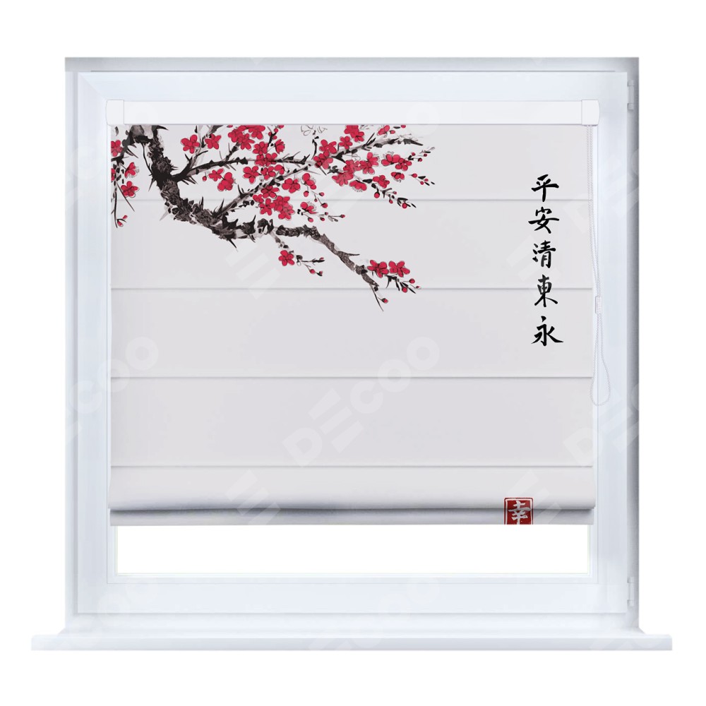 Римская штора производителя «Cortin», устанавливается на створку окна, пошита из ткани блэкаут с нанесением сублимационной печати «Цветущая сакура». Штора шьётся по индивидуальным размерам, для данного типа римской шторы возможная ширина от 35 до 150 см., высота до 250 см.