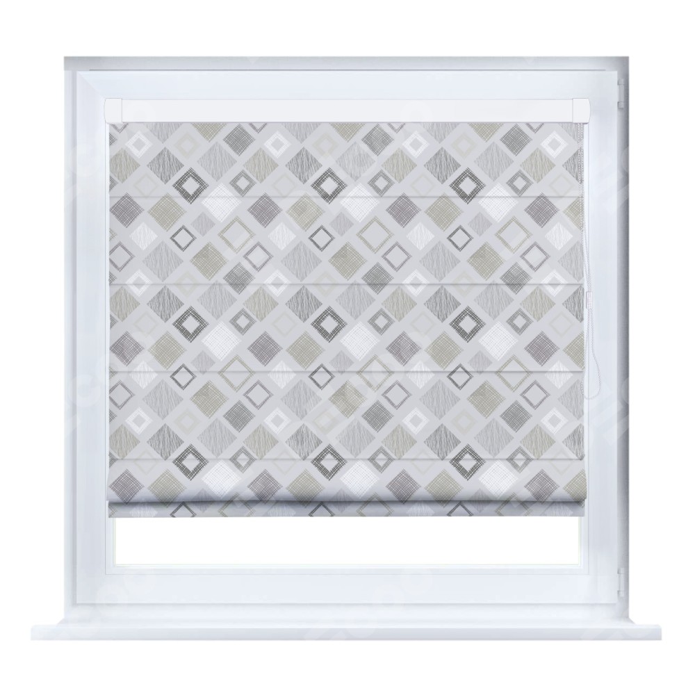 Римская штора производителя «Cortin», устанавливается на створку окна, пошита из ткани блэкаут с нанесением сублимационной печати «Квадро». Штора шьётся по индивидуальным размерам, для данного типа римской шторы возможная ширина от 35 до 150 см., высота до 250 см.