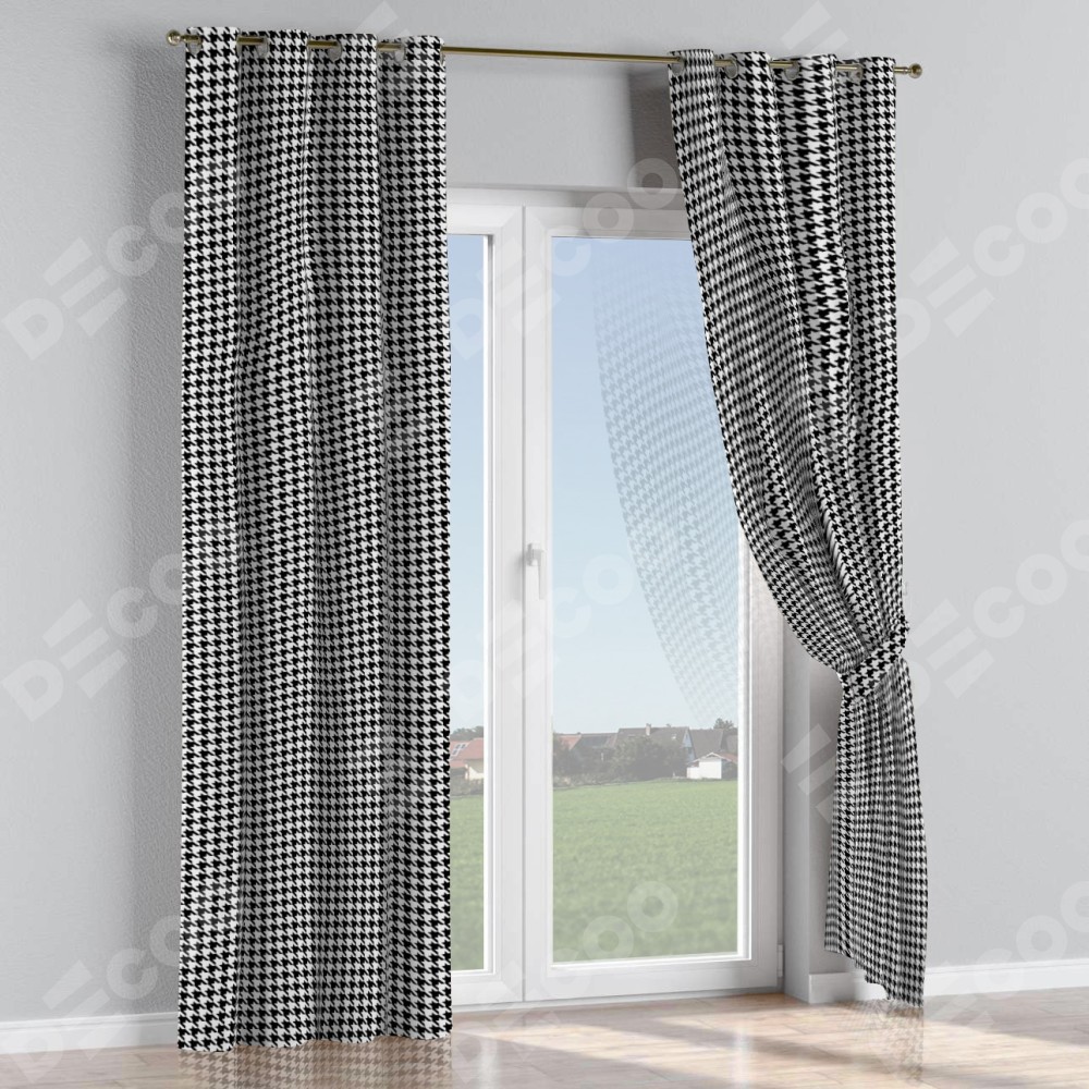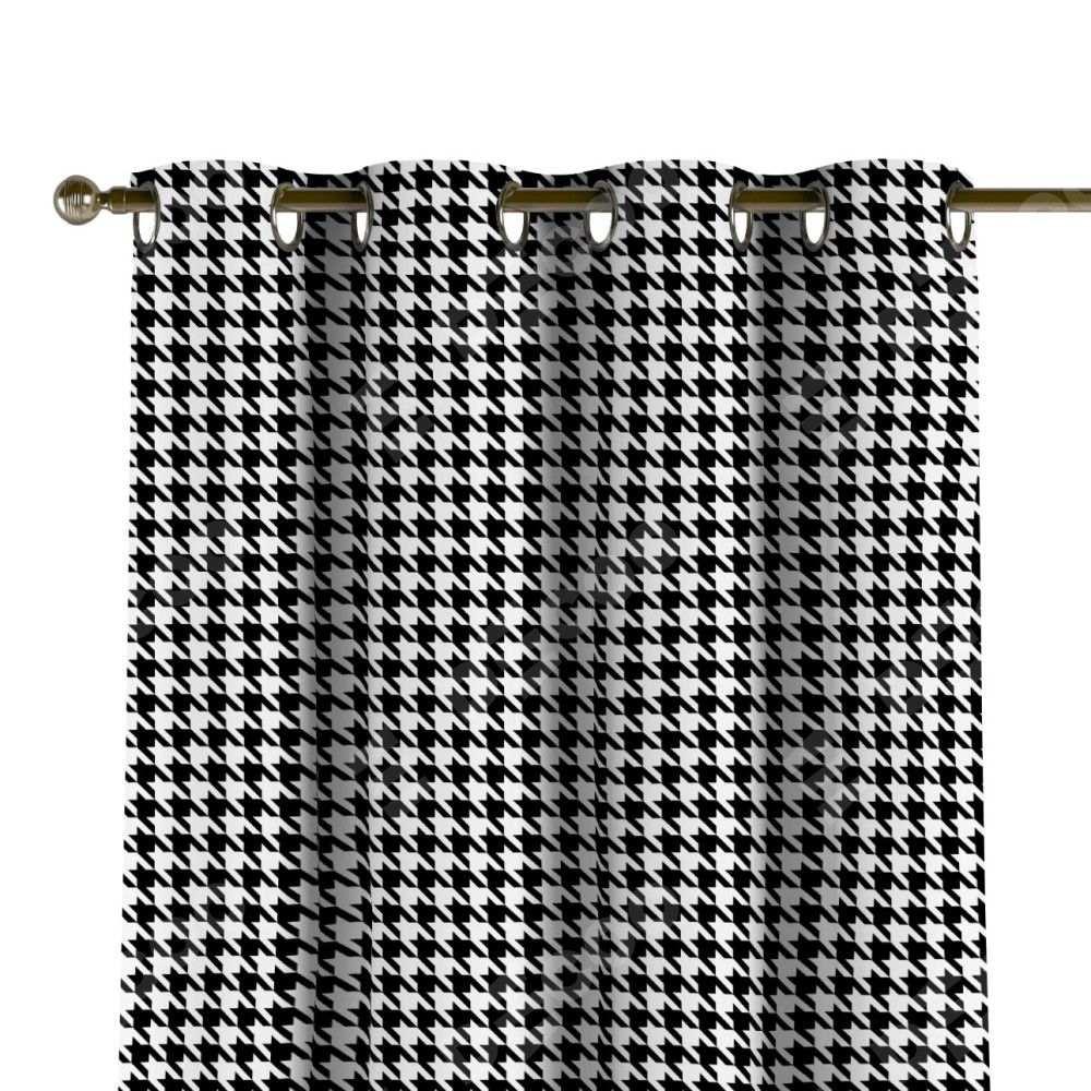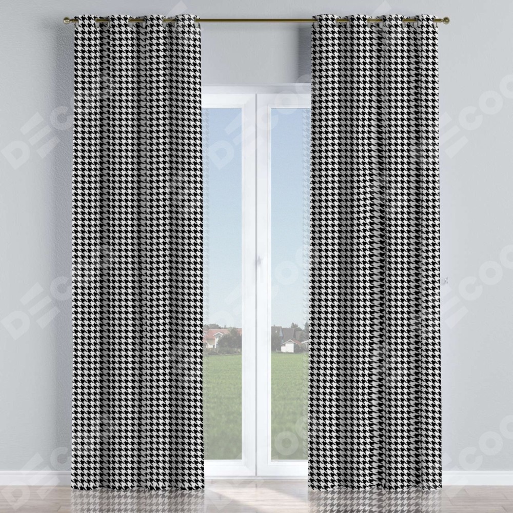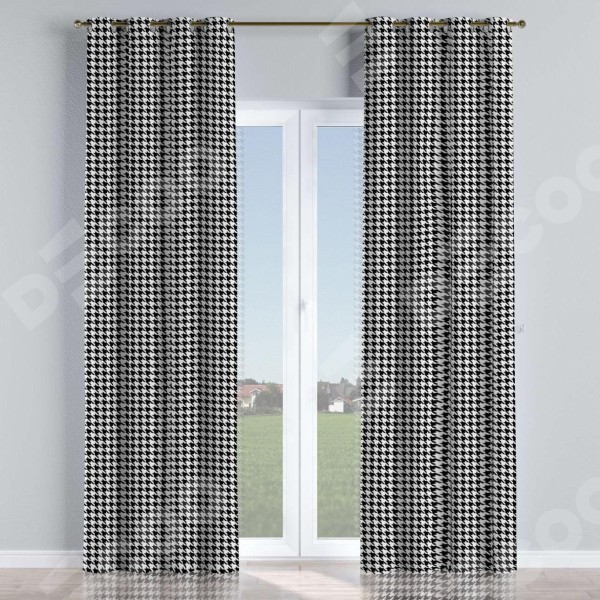 Комплект прямых штор, от производителя «Cortin», пошиты из ткани блэкаут с нанесением сублимационной печати «Гусиные лапки» черно-белый». Данная модель пошита на люверсах, комплектуется на выбор круглым карнизом и подходит для монтажа на стену или потолок. Прямые шторы на люверсах шьются по стандарту с коэффициентом 1/2 (на 100 см. ширины проёма 200 см. ширины ткани), отличительным преимуществом данной модели является простой способ монтажа. Достаточно повесить ее на трубу и штора готова!