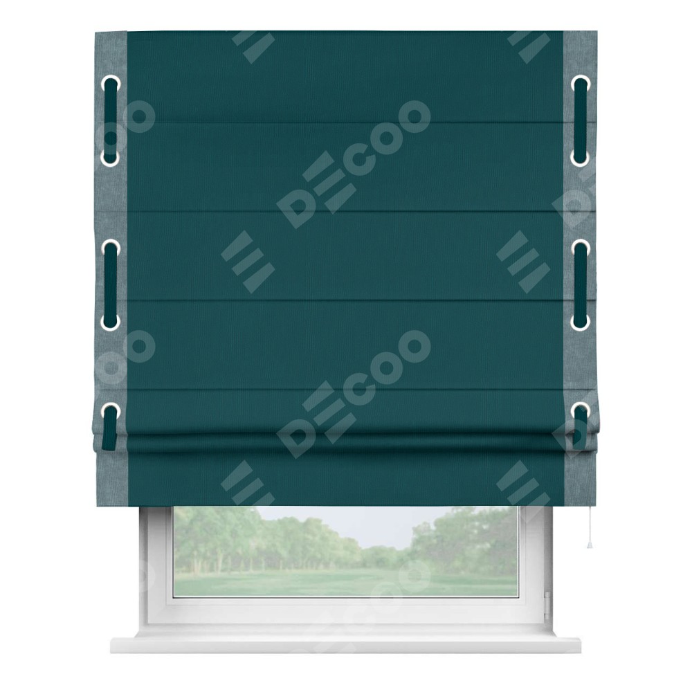 Римская штора «Кортин» для проема, канвас изумрудный, с кантом Стрим Дуо (люверсы с пояском)
