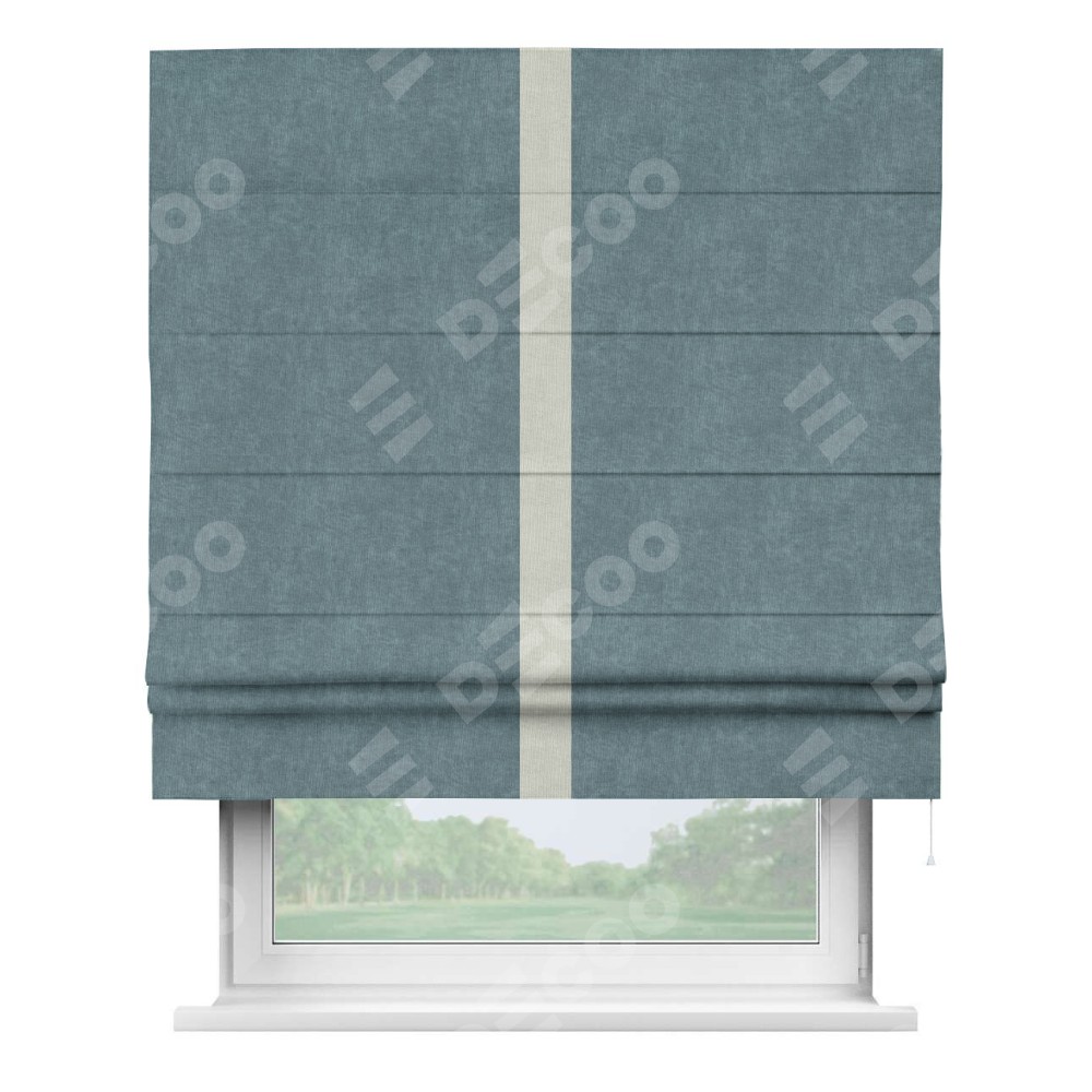 Римская штора «Кортин» для проема, канвас серо-голубой, с кантом Хайвэй