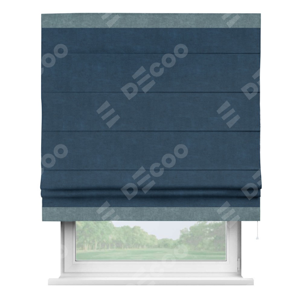 Римская штора «Кортин» для проема, канвас синий, с кантом Горизонт