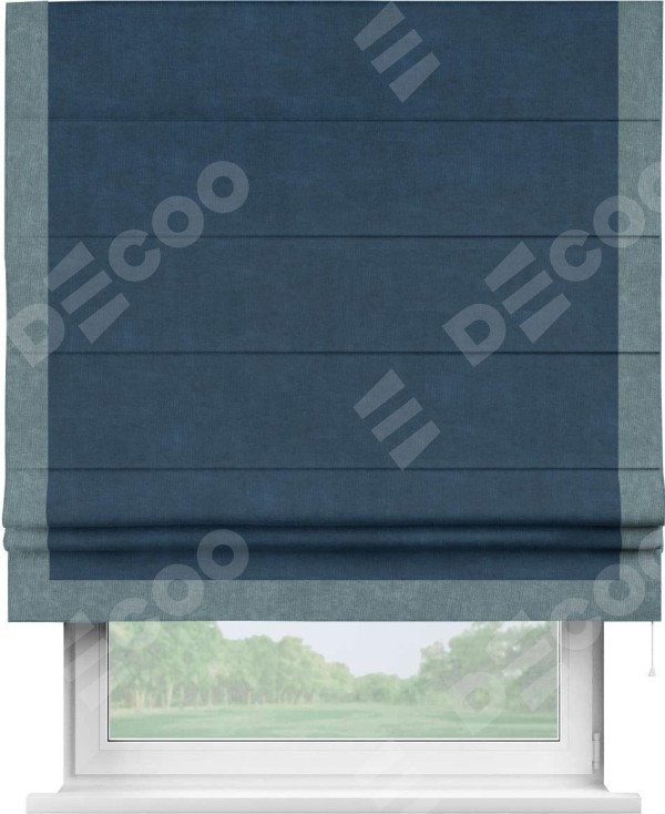 Римская штора «Кортин» для проема, канвас синий, с кантом Виктория