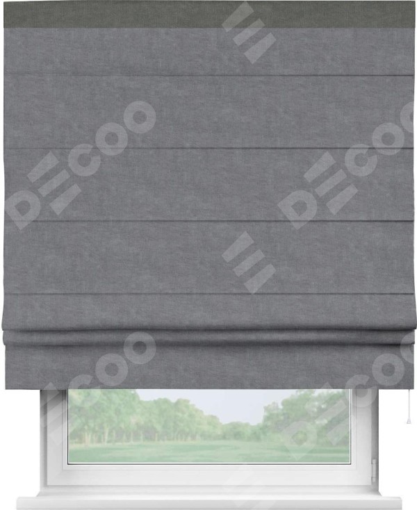 Римская штора «Кортин» для проема, канвас стальной, с кантом Кинг