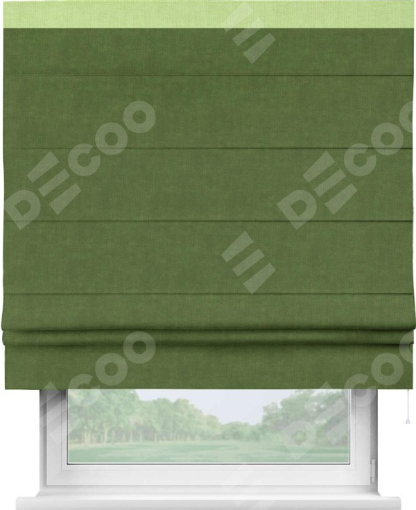 Римская штора «Кортин» для проема, канвас трава, с кантом Кинг