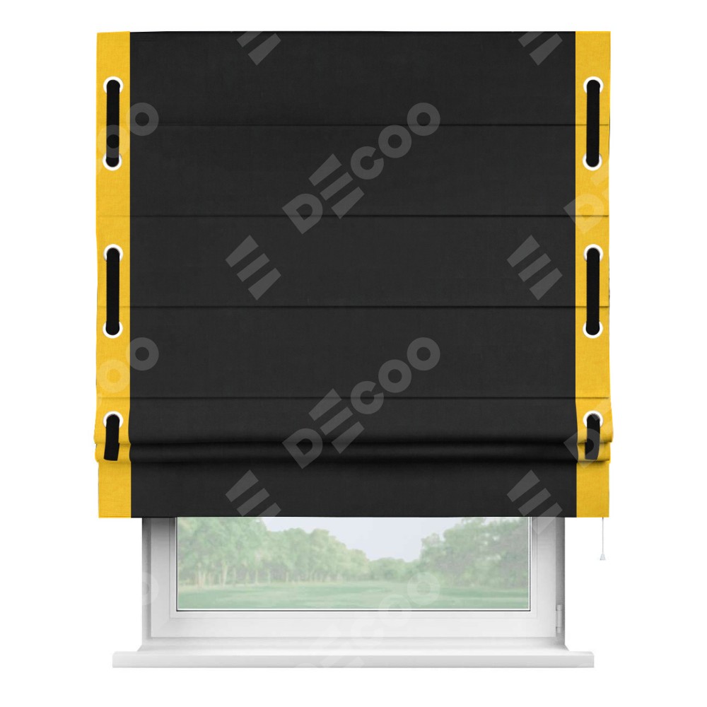 Римская штора «Кортин» для проема, канвас черный, с кантом Стрим Дуо (люверсы с пояском)