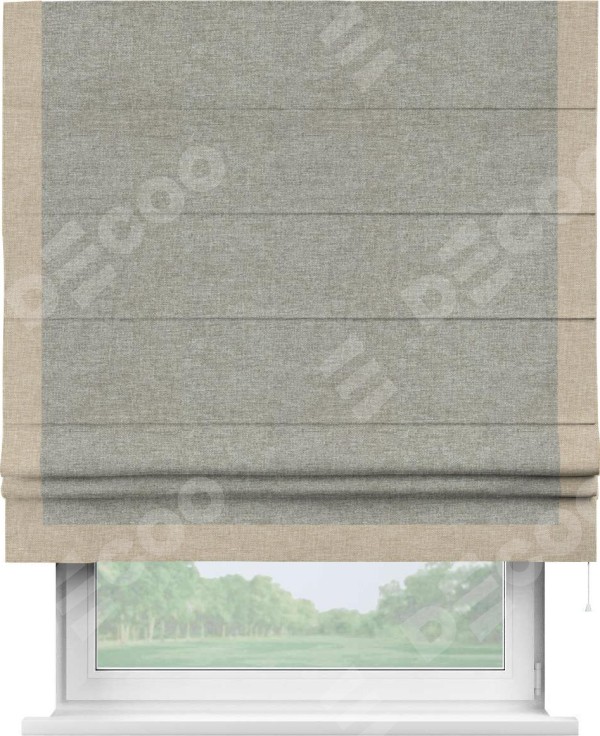 Римская штора «Кортин» с кантом Виктория, для проема, ткань лён кашемир серый