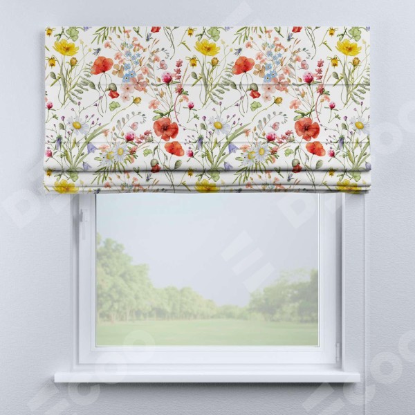 Классическая римская штора производителя «Cortin», пошита из ткани блэкаут с нанесением сублимационной печати «Полевые маки». Имеет универсальный механизм и подходит для монтажа: на потолок, на стену и в нишу.