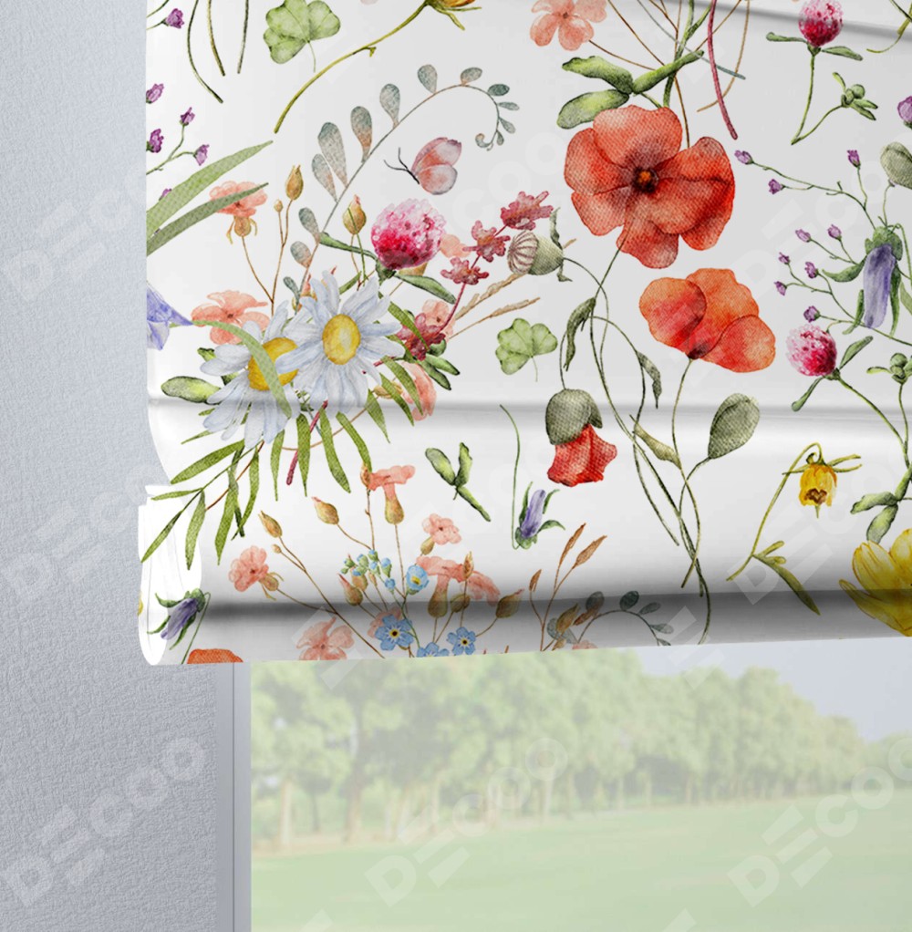 Римская штора «Кортин» на петлях «Полевые маки»