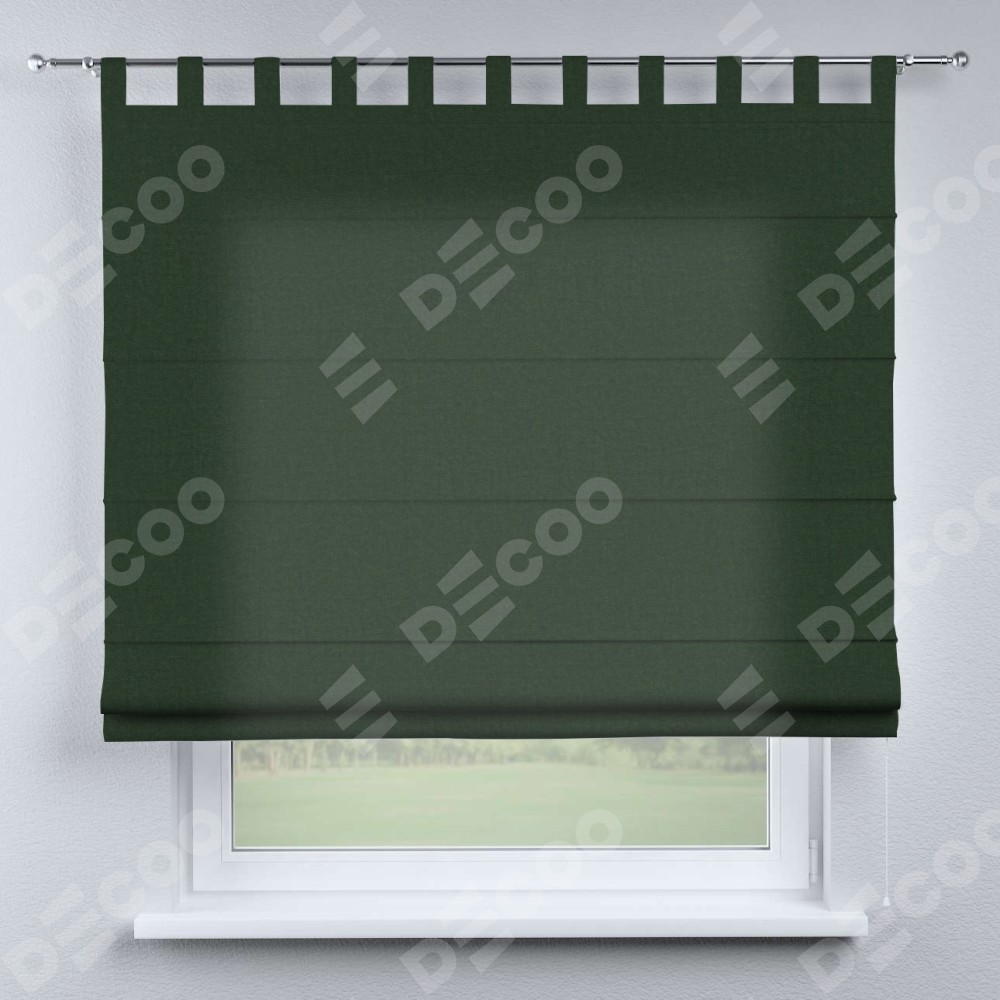 Римская штора производителя «Cortin», используется для проёма, пошита из ткани канвас глубокий зелёный, артикул ткани v-588. Данная модель пошита на петлях, комплектуется на выбор круглым карнизом и подходит для монтажа на стену. Римская штора на петлях имеет простую систему регулировки высоты, отличительным преимуществом данной модели является простой способ монтажа. Достаточно повесить ее на трубу и штора готова!