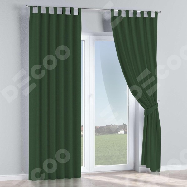 Комплект прямых штор, от производителя «Cortin», пошиты из ткани канвас глубокий зелёный, артикул ткани v-588. Данная модель пошита на петлях, комплектуется на выбор круглым карнизом и подходит для монтажа на стену или потолок. Прямые шторы на петлях шьются по стандарту с коэффициентом 1/2 (на 100 см. ширины проёма 200 см. ширины ткани), отличительным преимуществом данной модели является простой способ монтажа. Достаточно повесить ее на трубу и штора готова!