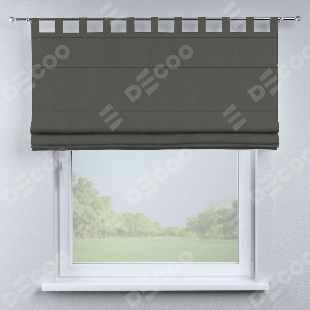 Римская штора производителя «Cortin», используется для проёма, пошита из ткани блэкаут однотонный тёмно-серый, артикул ткани 91570. Данная модель пошита на петлях, комплектуется на выбор круглым карнизом и подходит для монтажа на стену. Римская штора на петлях имеет простую систему регулировки высоты, отличительным преимуществом данной модели является простой способ монтажа. Достаточно повесить ее на трубу и штора готова!