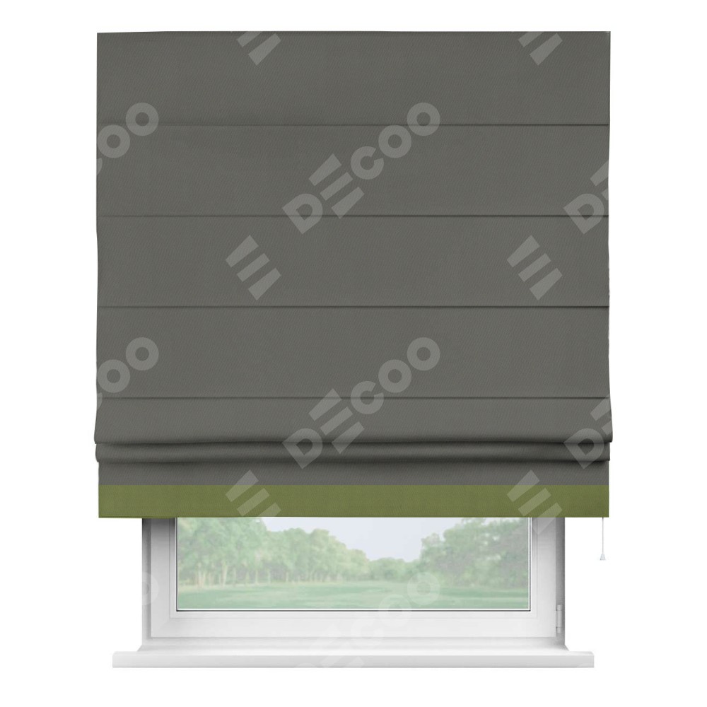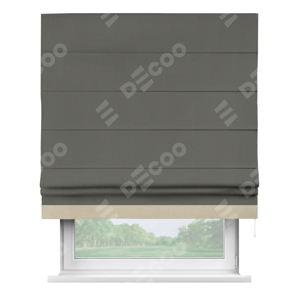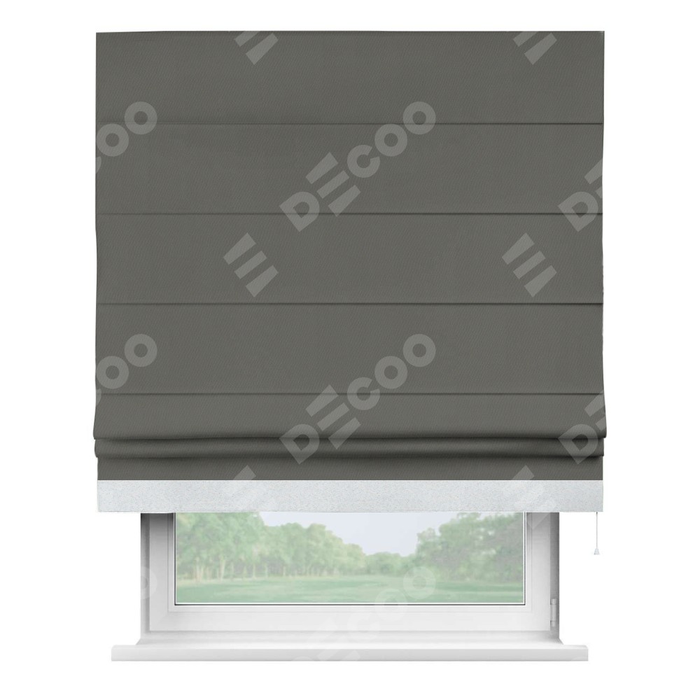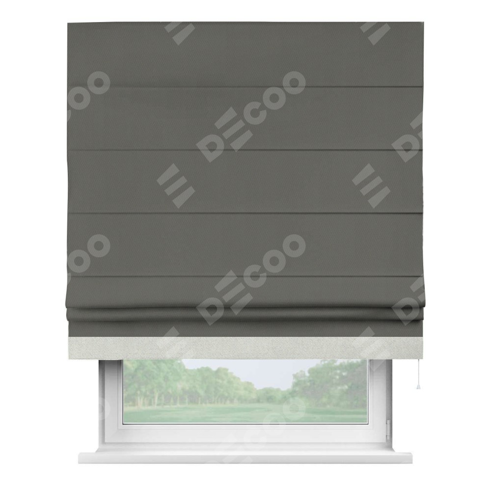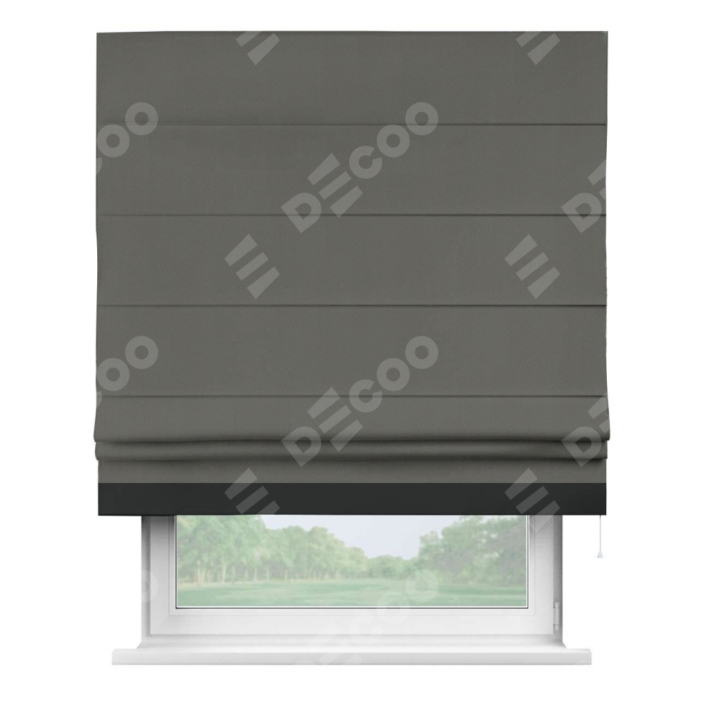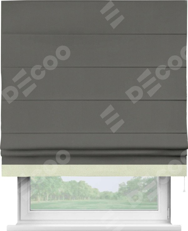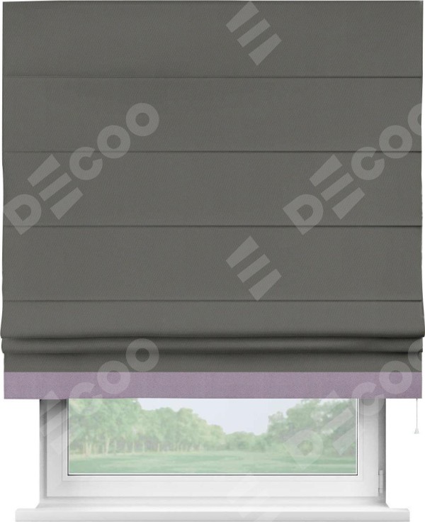 Римская штора «Кортин» для проема, блэкаут однотонный тёмно-серый с кантом Джестер