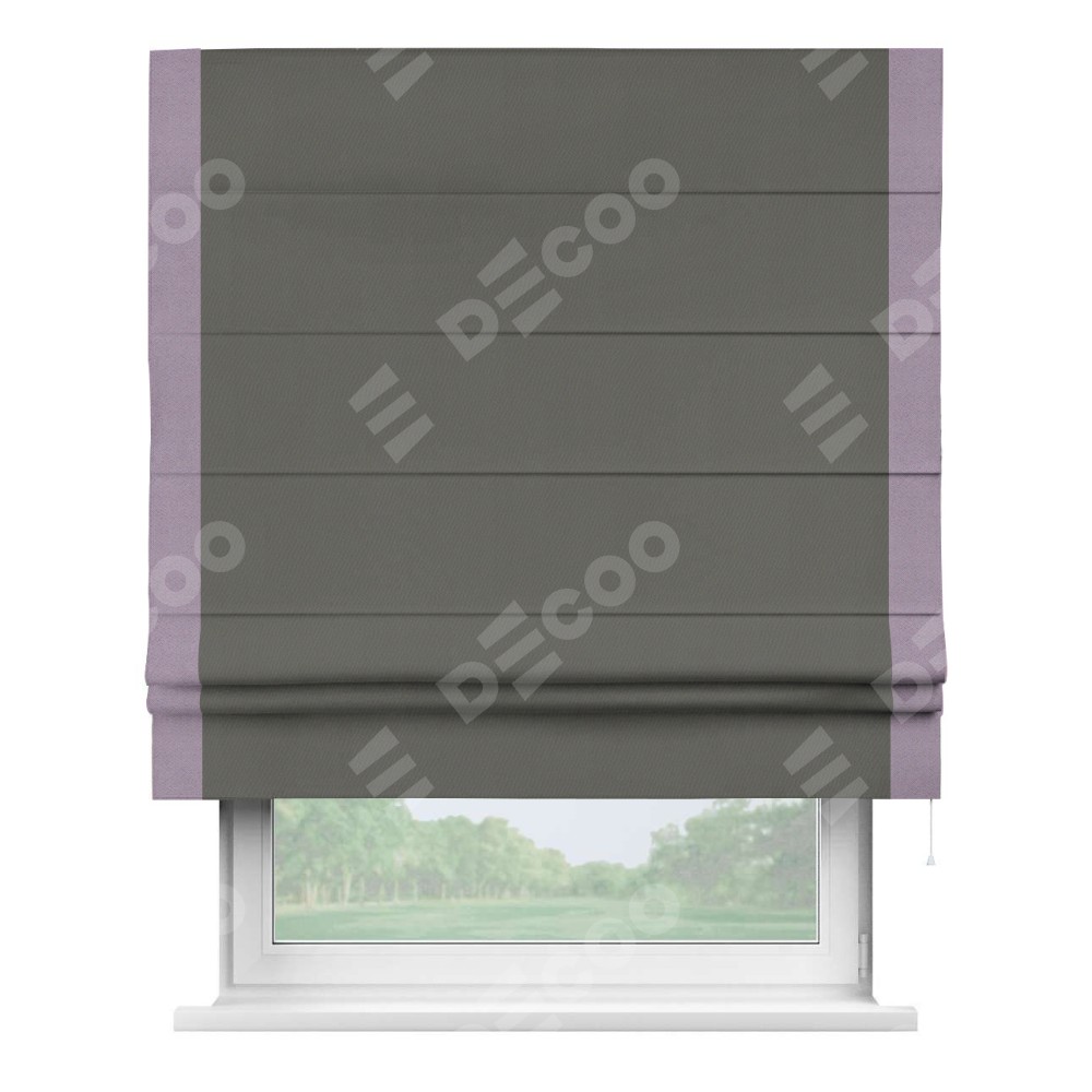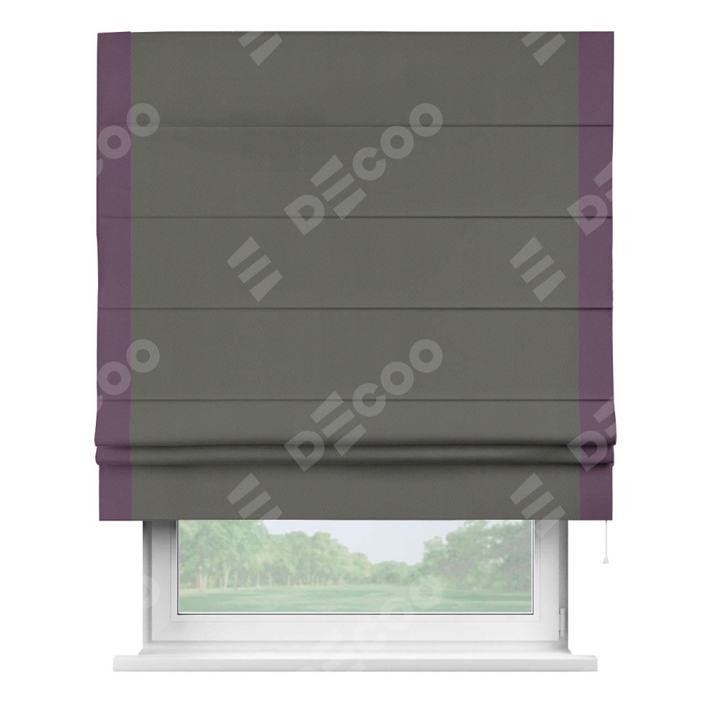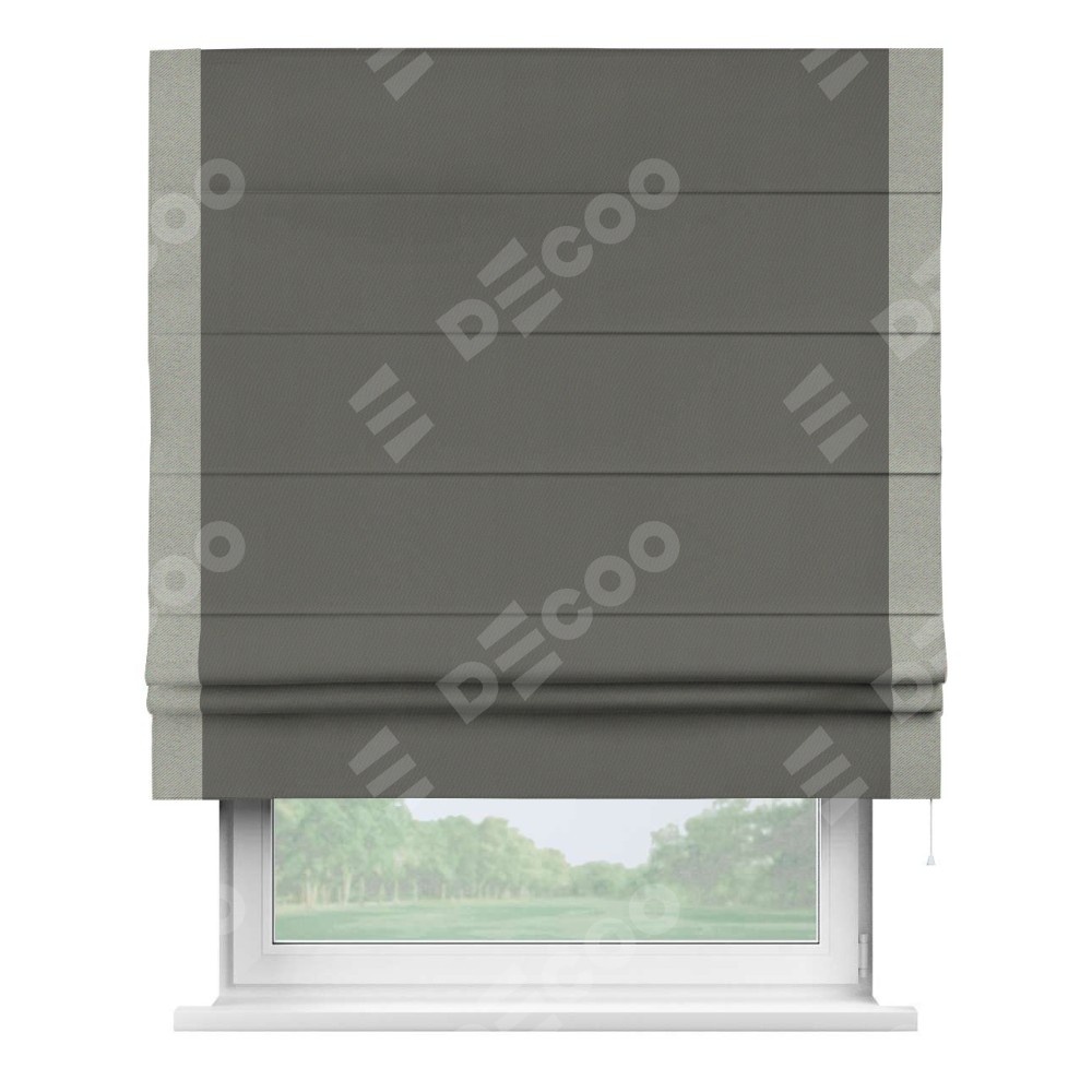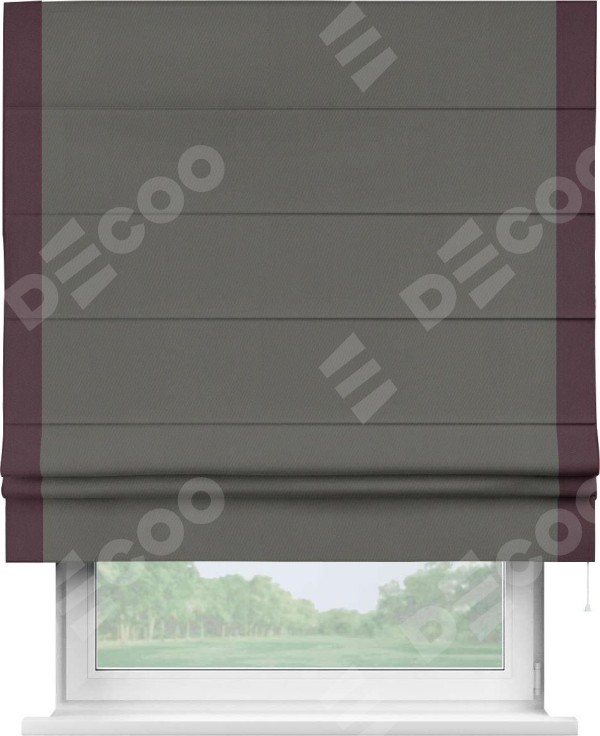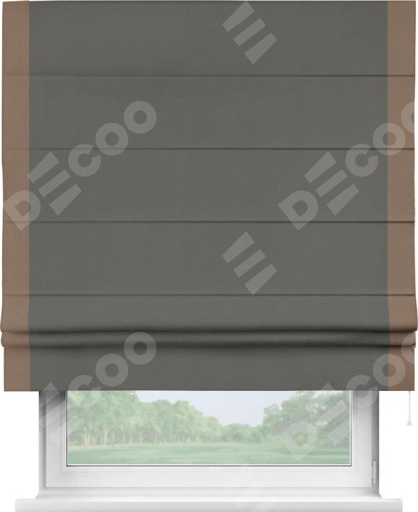 Римская штора «Кортин» для проема, блэкаут однотонный тёмно-серый с кантом Стрим Дуо