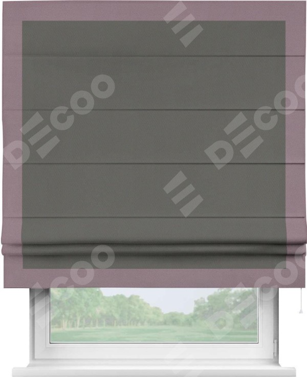 Римская штора «Кортин» для проема, блэкаут однотонный тёмно-серый с кантом Чесс
