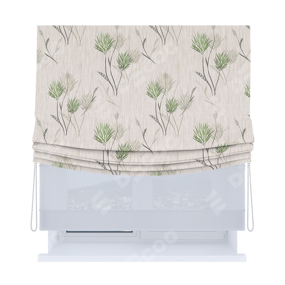 Римская штора «Кортин», день-ночь с мягкими складками, «Полевые травы бежевый»