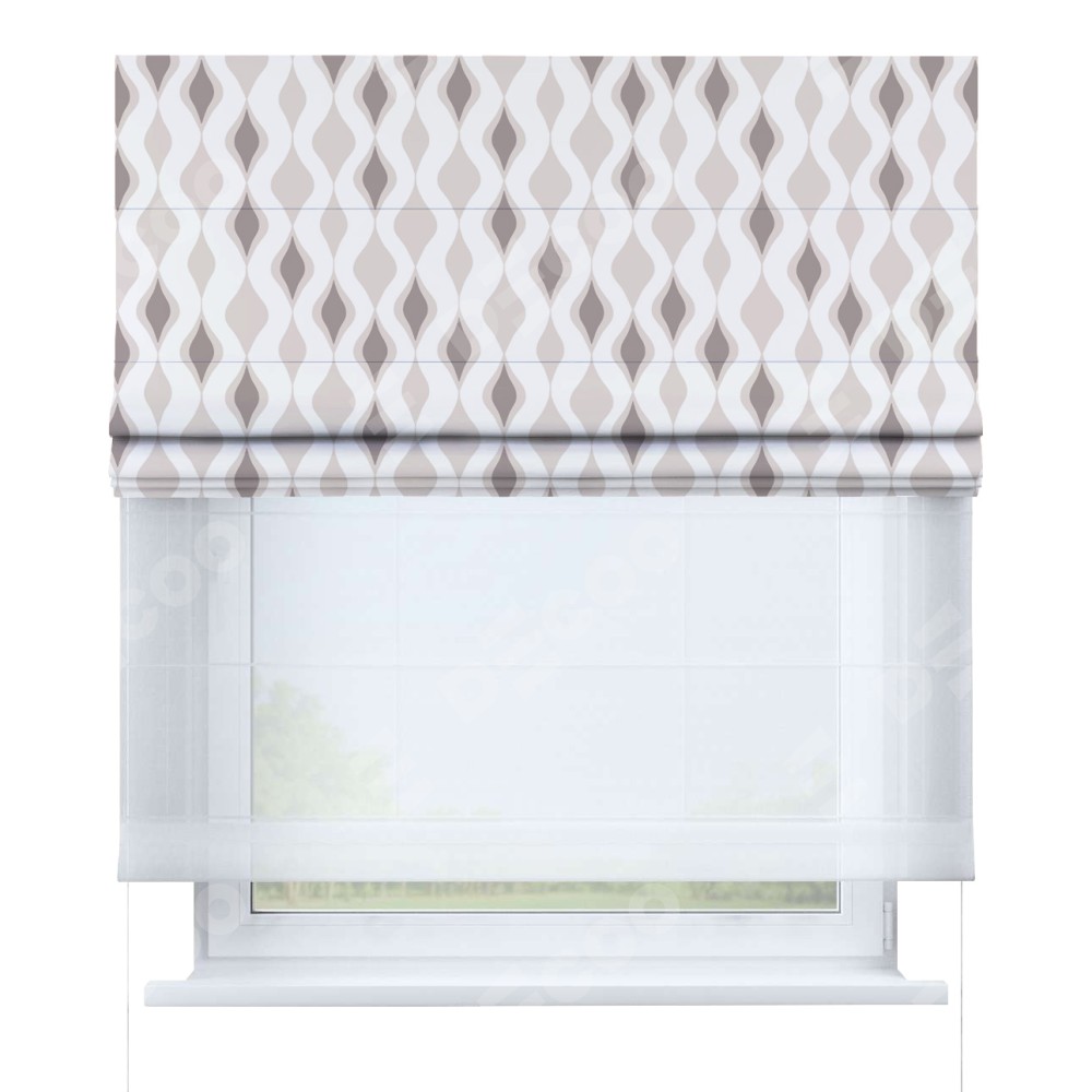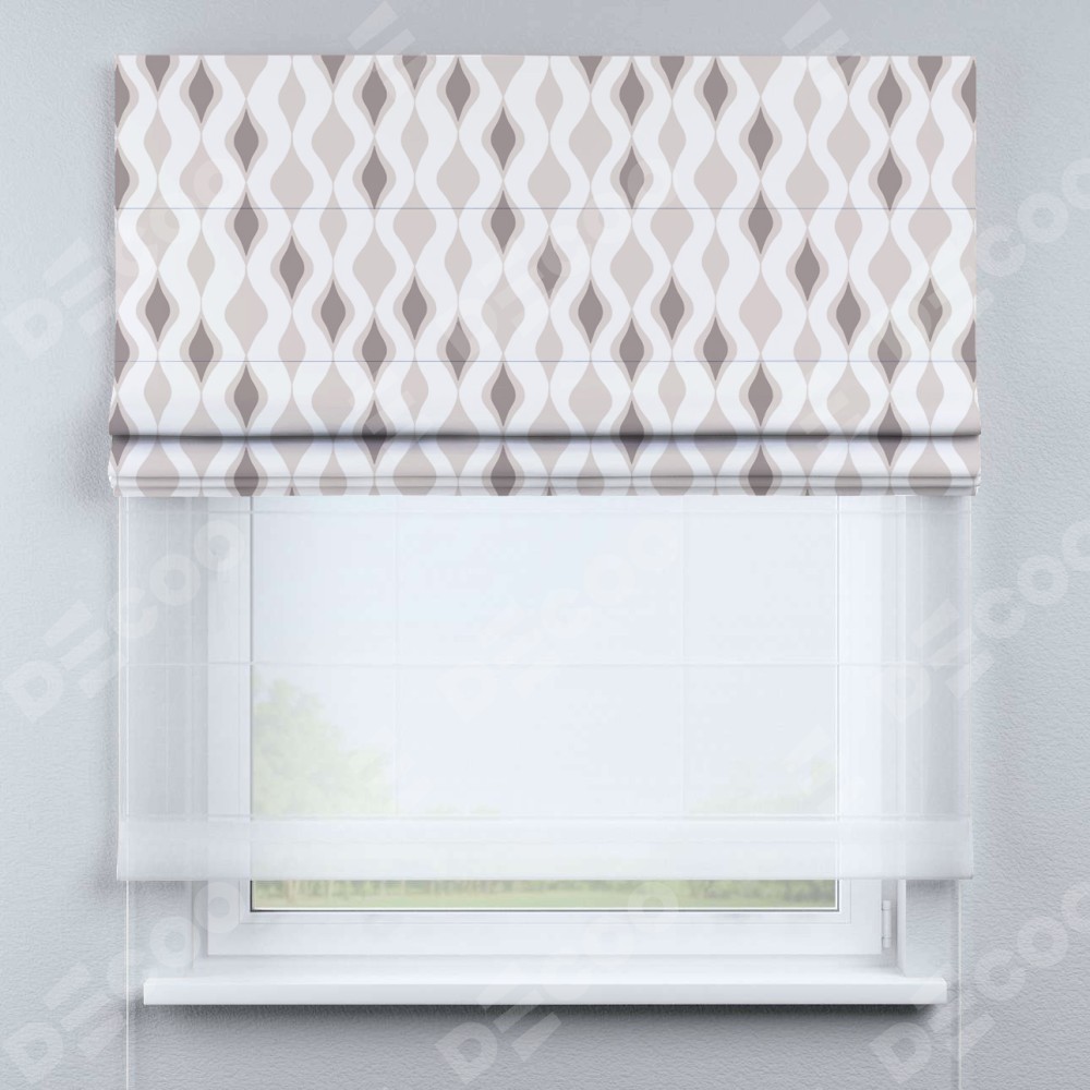 Одно из ключевых преимуществ двойной римской шторы «День-ночь» — это её функциональность. При поднятии основной шторы проём не оголяется благодаря наличию второй ткани из тюля. Это создает дополнительный уровень уюта и комфорта в помещении. Кроме того, доступен выбор из различных видов тканей тюля, позволяющий настроить штору в соответствии с индивидуальными предпочтениями.