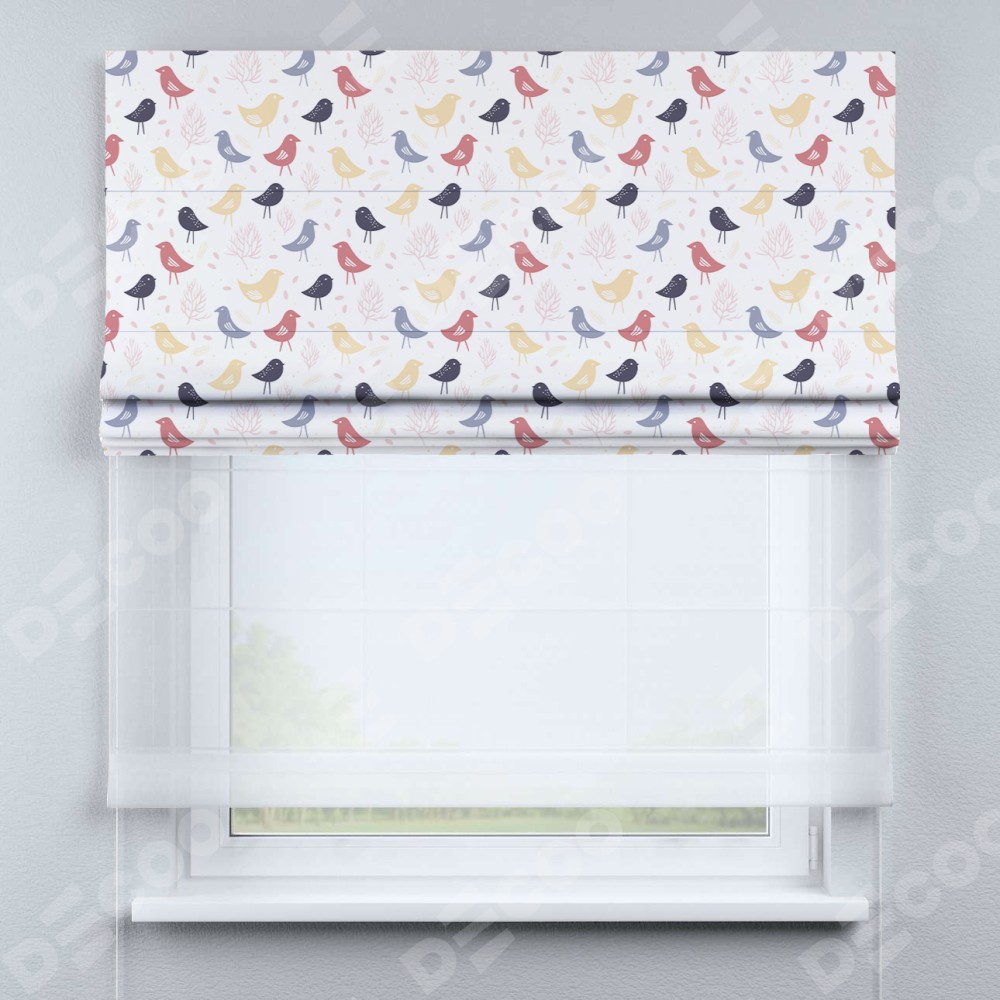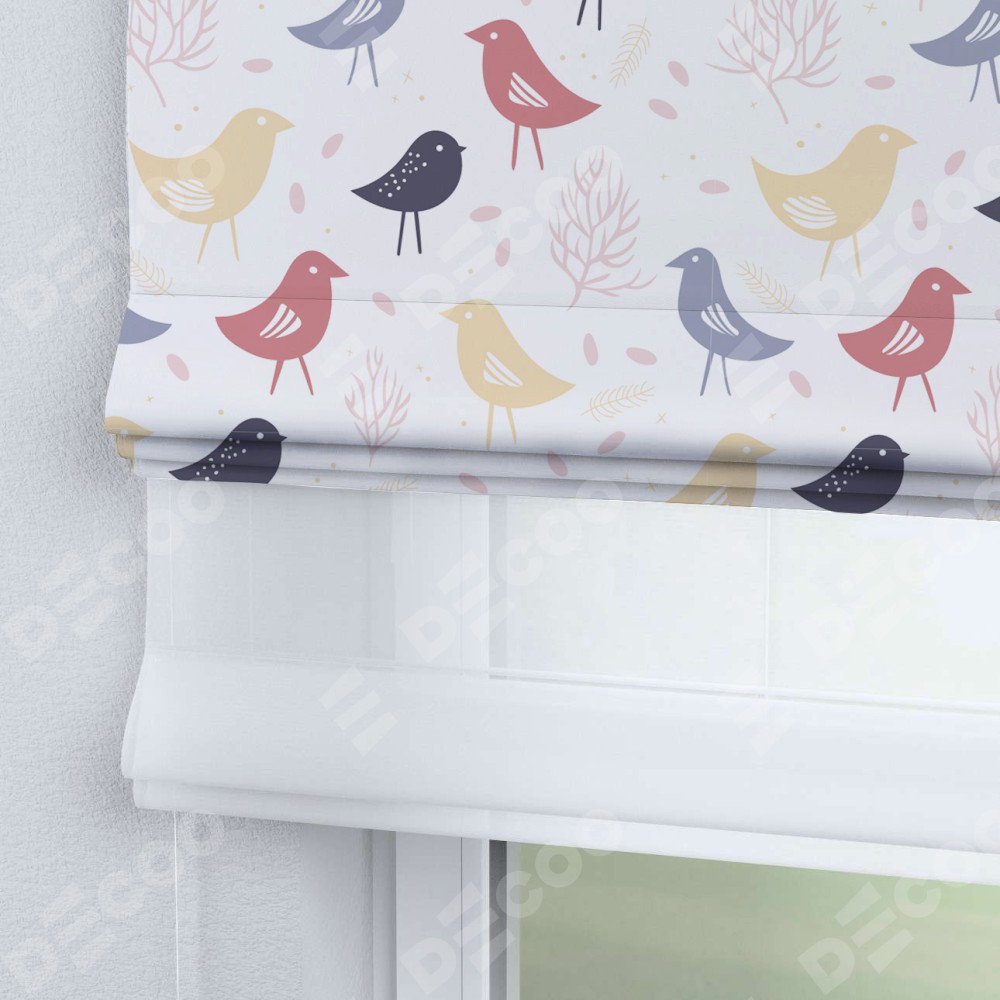 Римская штора «Кортин» день-ночь «Цветные птички»