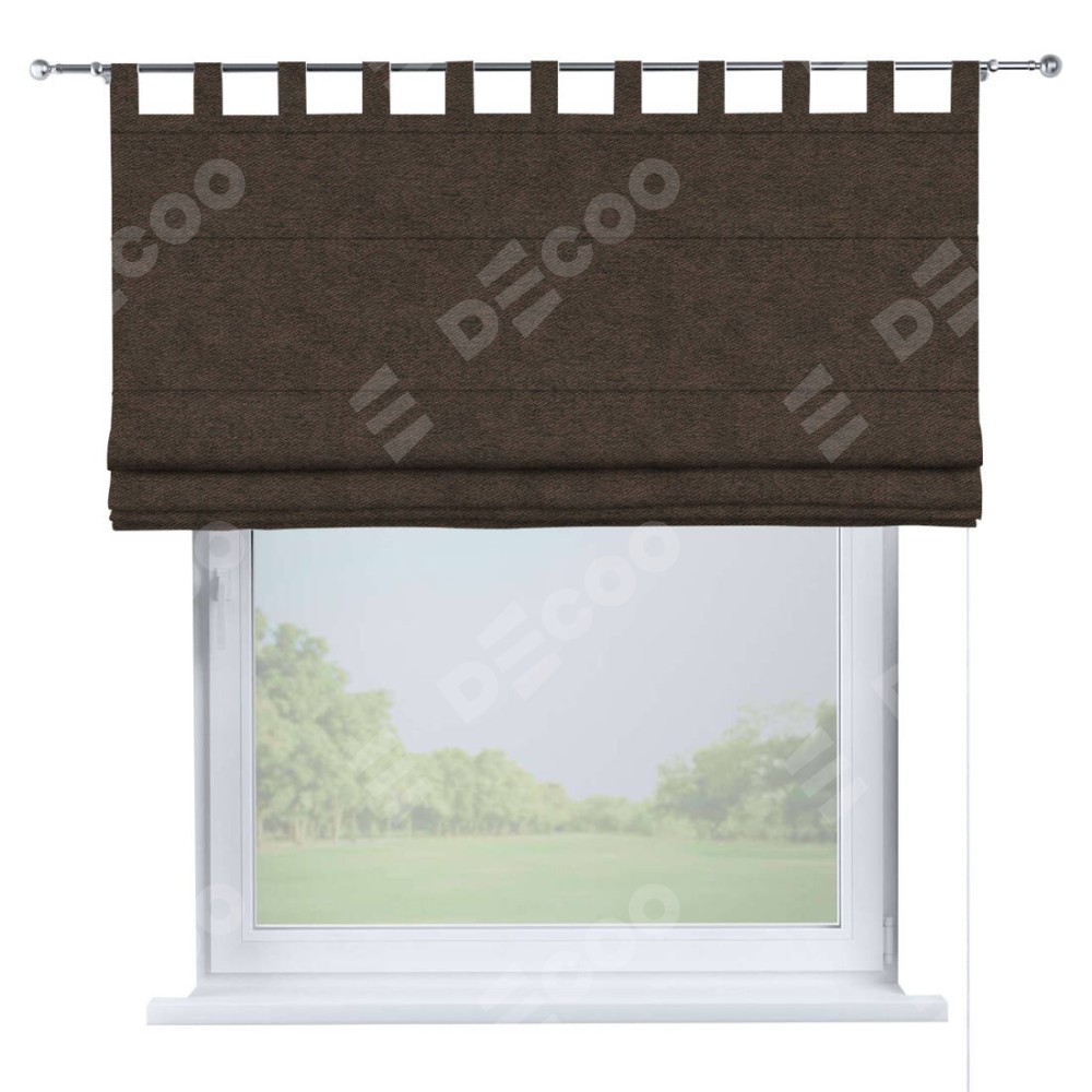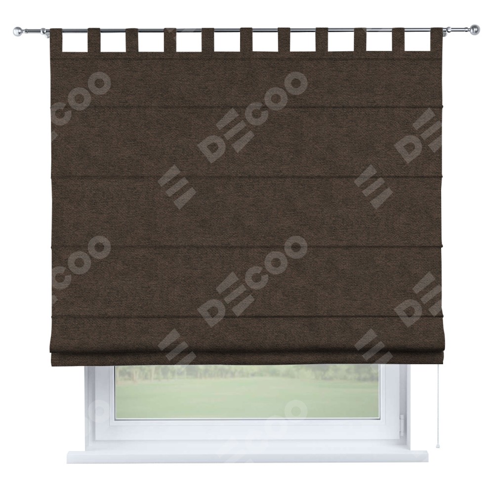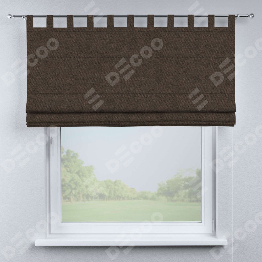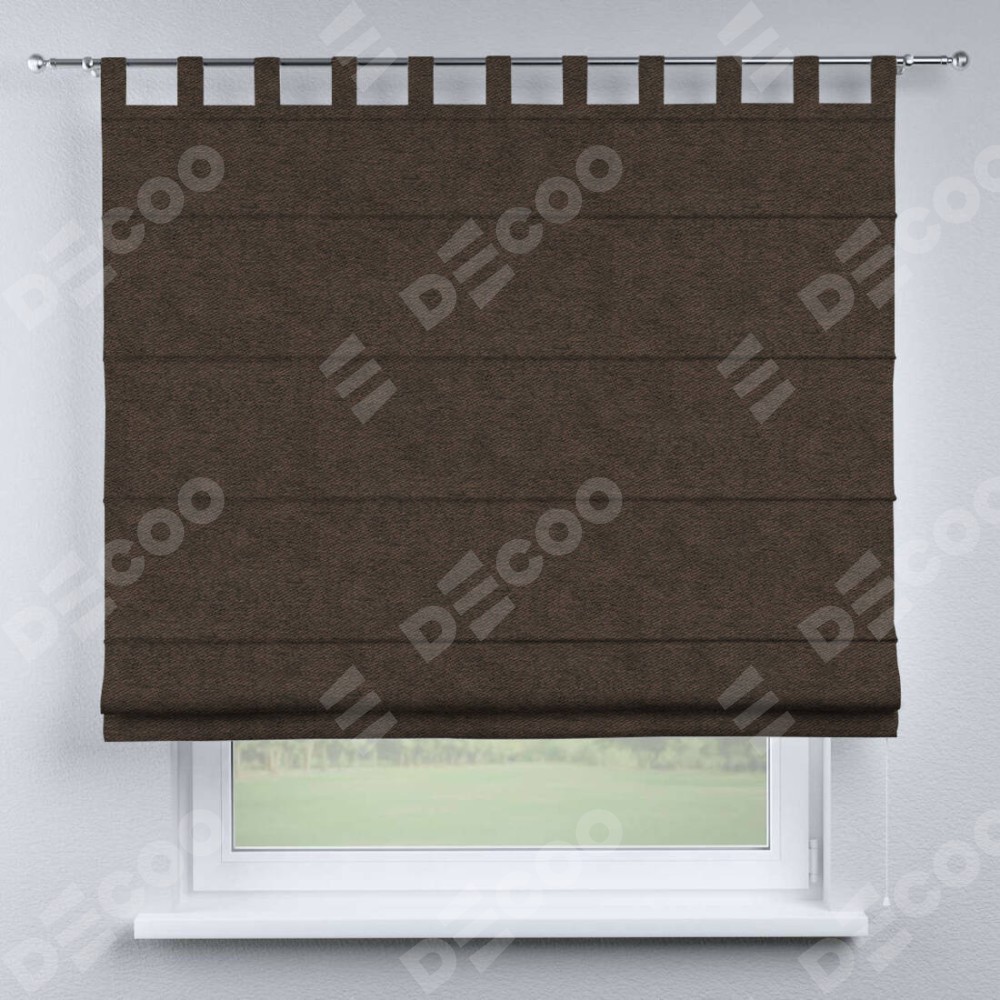 Римская штора производителя «Cortin», используется для проёма, пошита из ткани твид блэкаут тёмно-коричневый, артикул ткани 90933. Данная модель пошита на петлях, комплектуется на выбор круглым карнизом и подходит для монтажа на стену. Римская штора на петлях имеет простую систему регулировки высоты, отличительным преимуществом данной модели является простой способ монтажа. Достаточно повесить ее на трубу и штора готова!