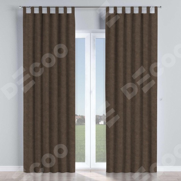 Комплект прямых штор, от производителя «Cortin», пошиты из ткани твид блэкаут тёмно-коричневый, артикул ткани 90933. Данная модель пошита на петлях, комплектуется на выбор круглым карнизом и подходит для монтажа на стену или потолок. Прямые шторы на петлях шьются по стандарту с коэффициентом 1/2 (на 100 см. ширины проёма 200 см. ширины ткани), отличительным преимуществом данной модели является простой способ монтажа. Достаточно повесить ее на трубу и штора готова!