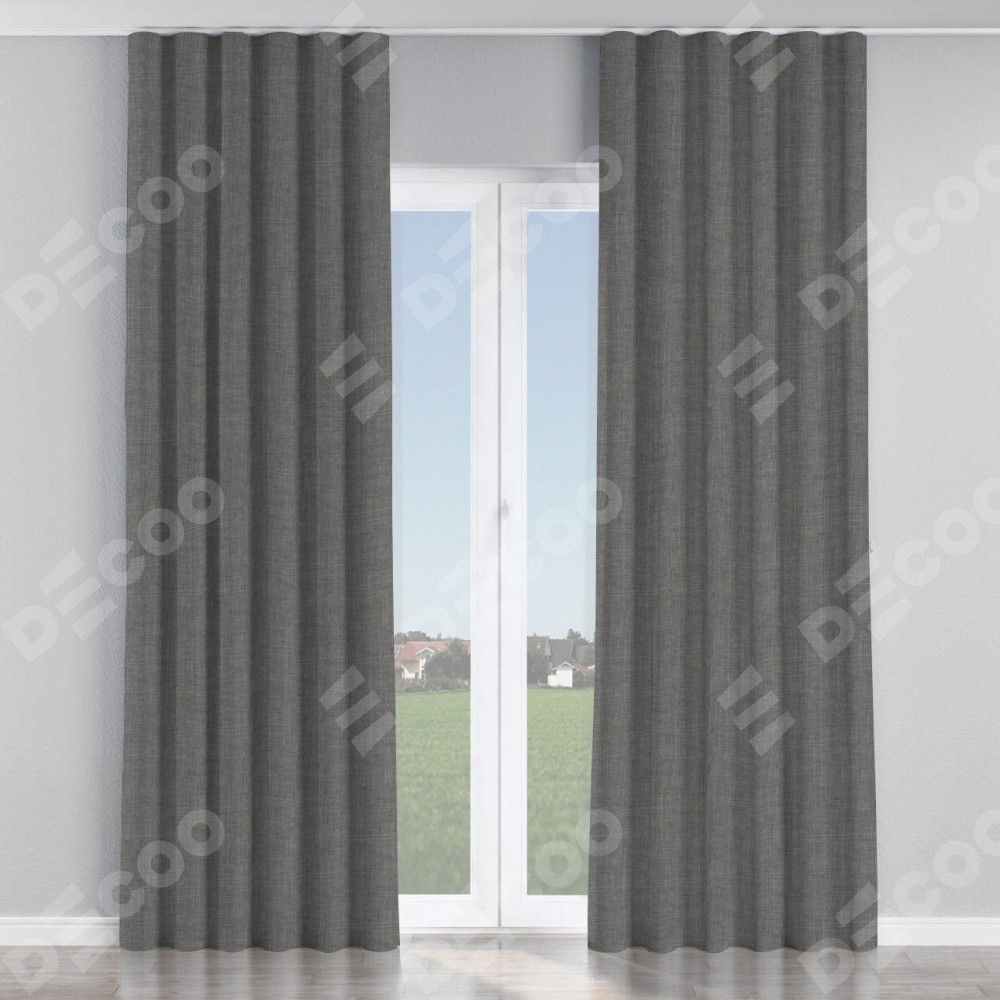 Комплект прямых штор, от производителя «Cortin», пошиты из ткани лён тёмно-серый, артикул ткани 7441. С изнаночной стороны в верхней части штор пристрачивается шторная лента с декоративными складками «Волна». Для создания элегантных складок прямые шторы шьются по стандарту с коэффициентом 1:2 (на 100 см. ширины проёма 200 см. ширины ткани).