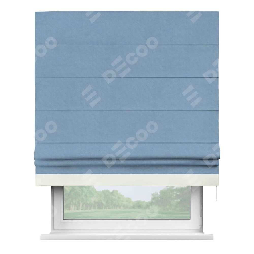 Римская штора «Кортин» для проема, канвас голубой, с кантом Джестер