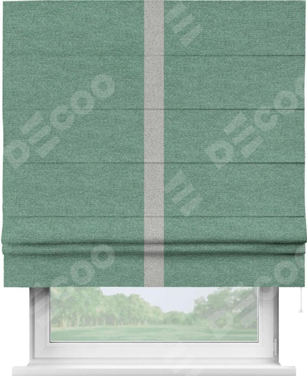 Римская штора «Кортин» с кантом Хайвэй, для проема, твид блэкаут бирюзовый