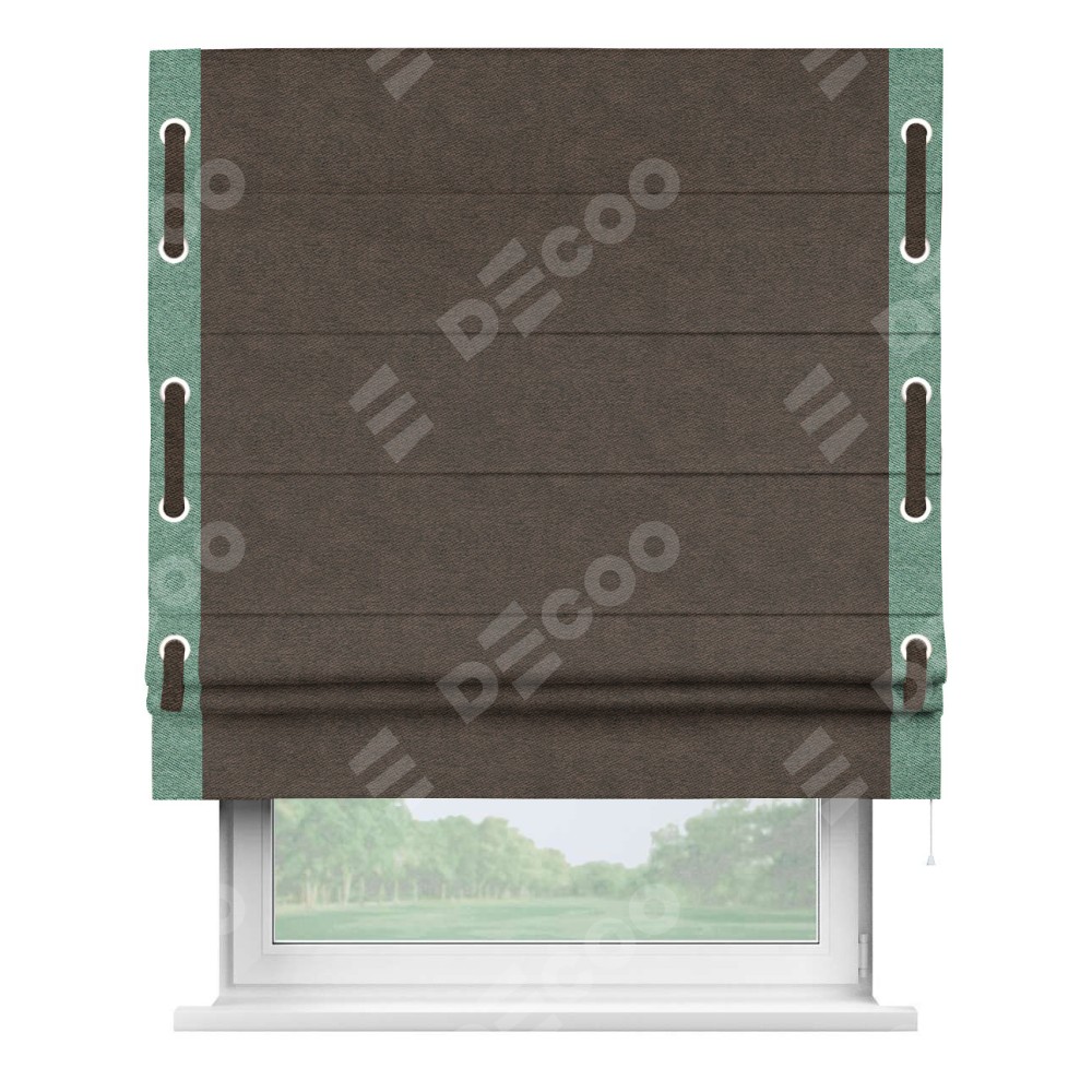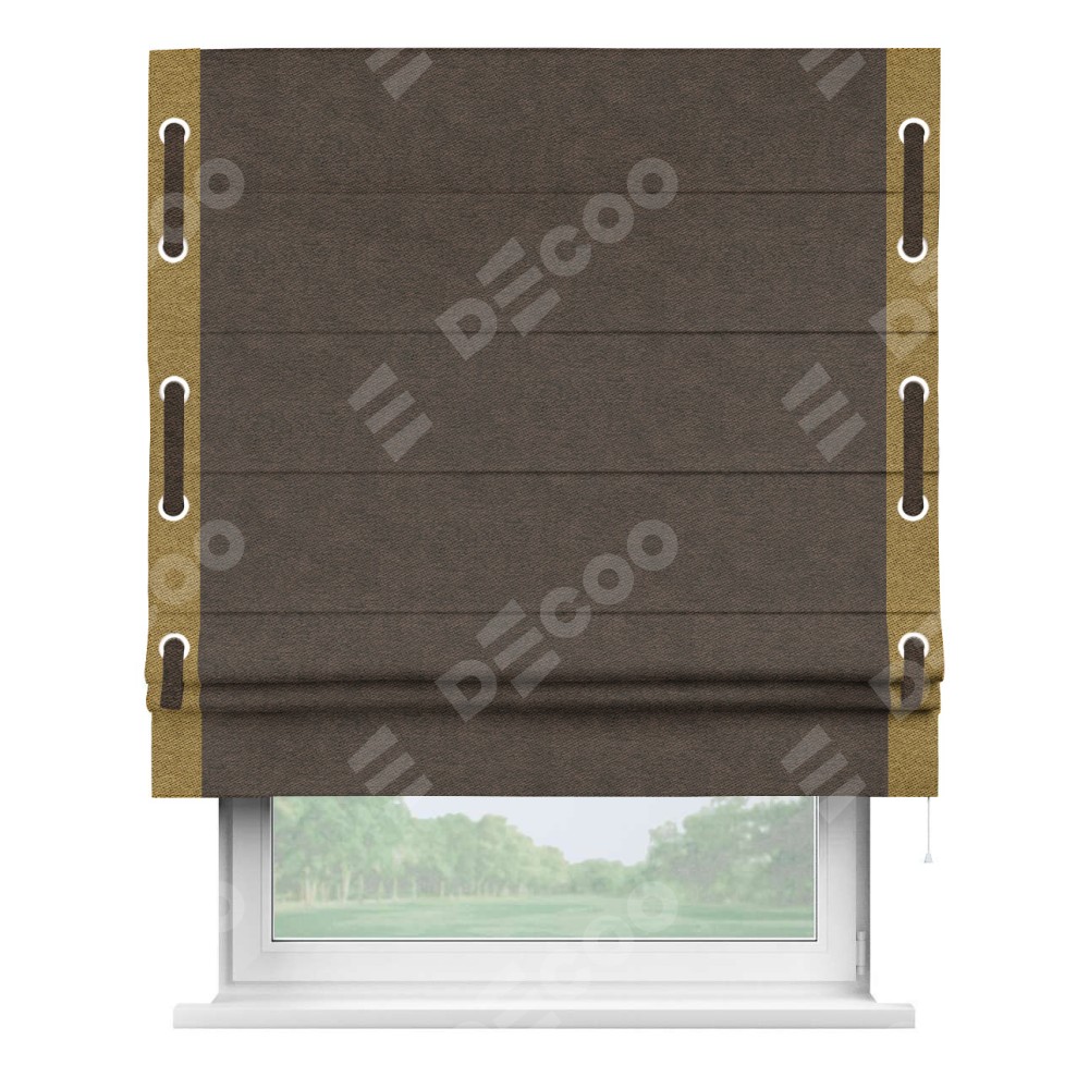 Римская штора «Кортин» для проема, твид блэкаут тёмно-коричневый, с кантом Стрим Дуо (люверсы с пояском)