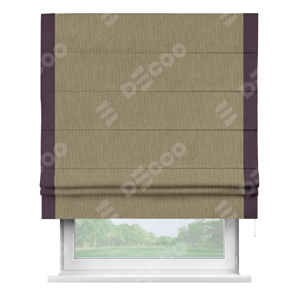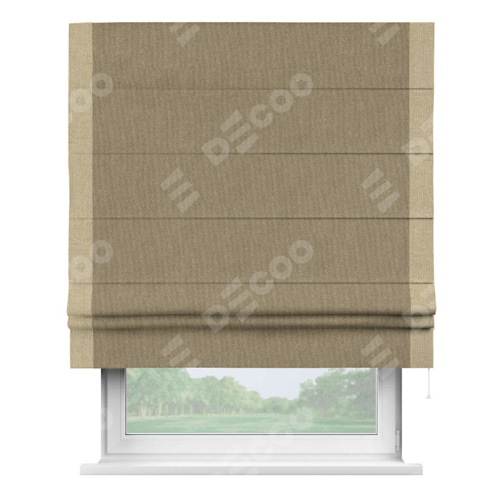 Римская штора «Кортин» для проема, лён димаут тёмно-бежевый с кантом Стрим Дуо