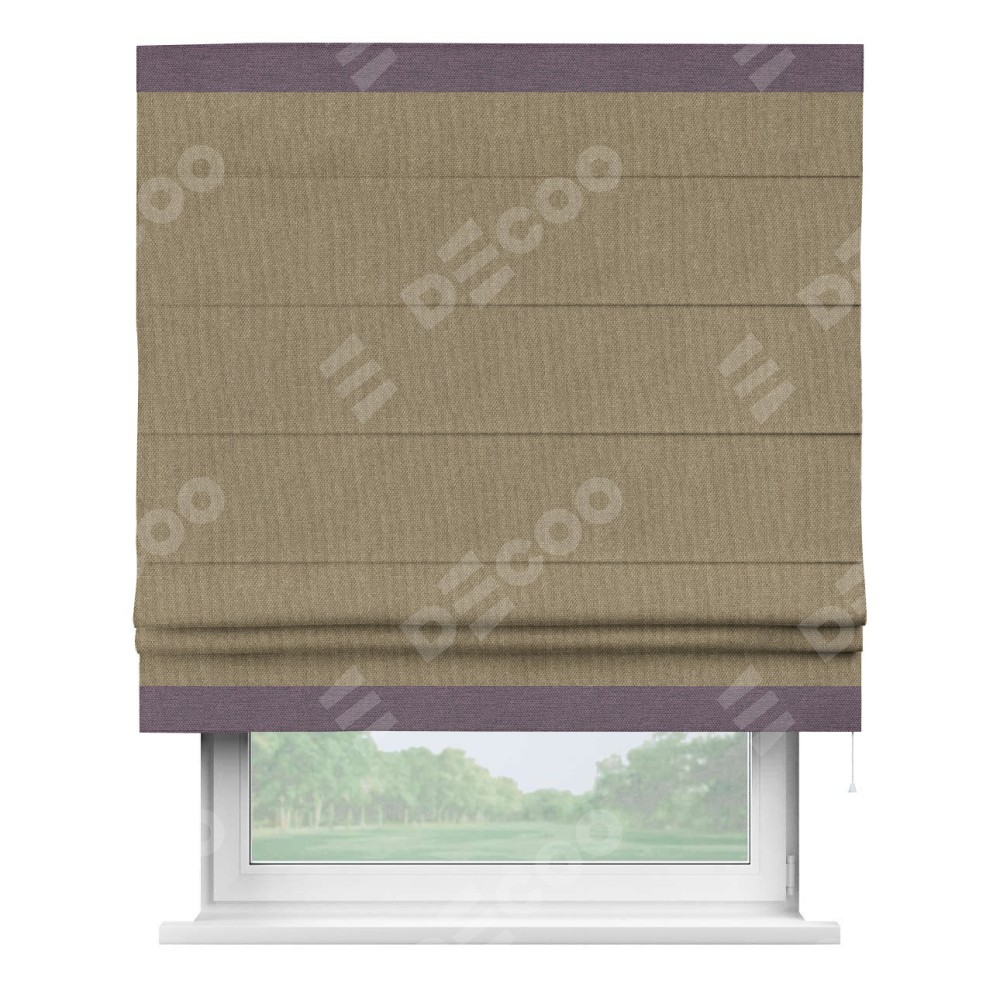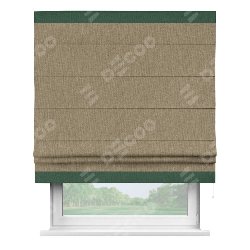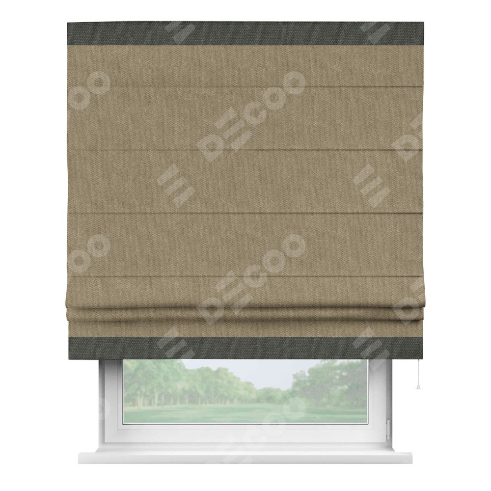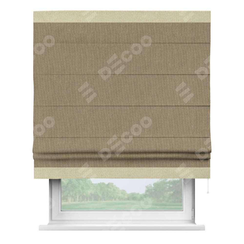 Римская штора «Кортин» для проема, лён димаут тёмно-бежевый с кантом Горизонт