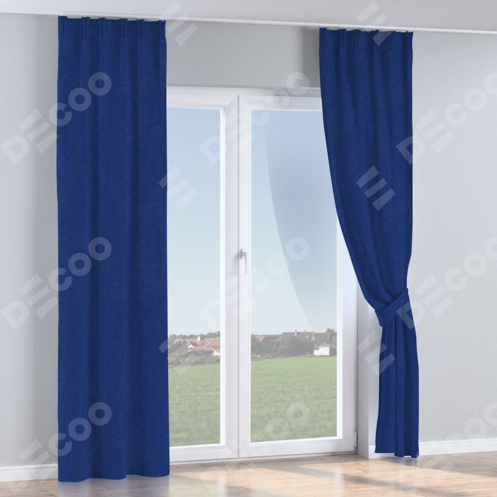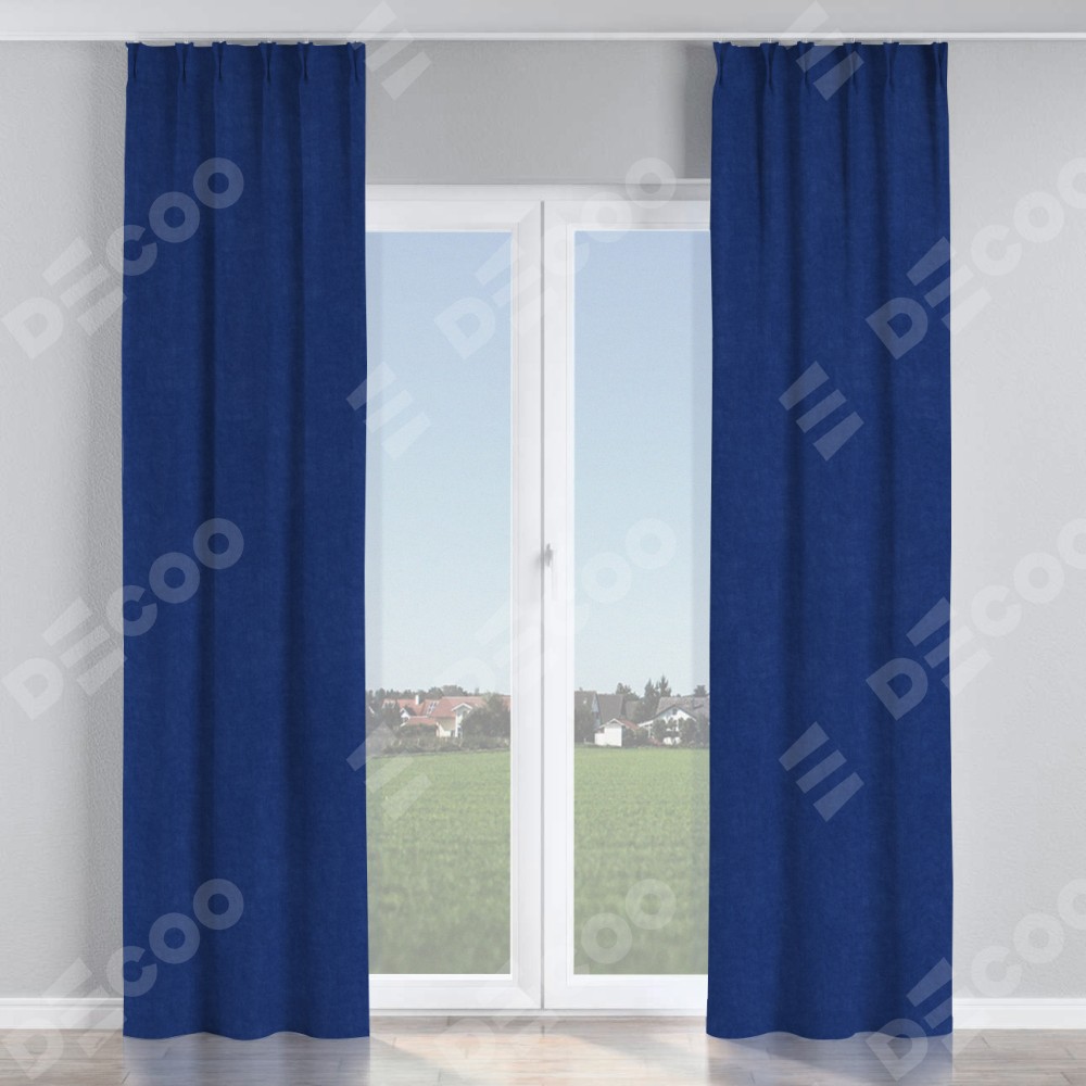 Комплект прямых штор, от производителя «Cortin», пошиты из ткани канвас синий электрик, артикул ткани v-355. С изнаночной стороны в верхней части штор пристрачивается шторная лента с декоративными складками «Кустик». Для создания элегантных складок прямые шторы шьются по стандарту с коэффициентом 1:2 (на 100 см. ширины проёма 200 см. ширины ткани).