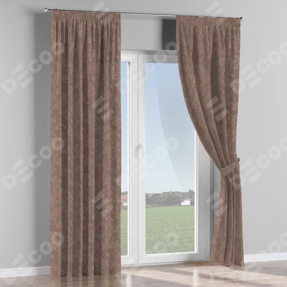 Комплект прямых штор, от производителя «Cortin», пошиты из ткани софт мрамор капучино, артикул ткани 93577. С изнаночной стороны в верхней части штор пристрачивается шторная лента с декоративными складками «Карандаш». Для создания элегантных складок прямые шторы шьются по стандарту с коэффициентом 1:2 (на 100 см. ширины проёма 200 см. ширины ткани).