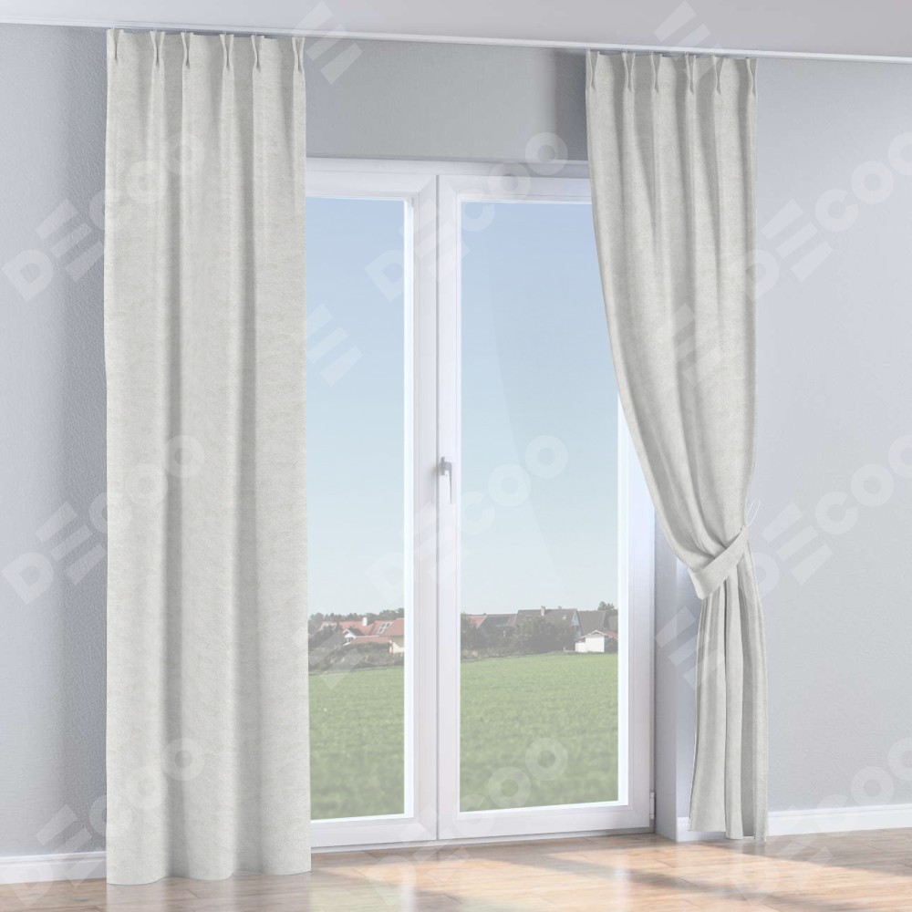 Комплект прямых штор, от производителя «Cortin», пошиты из ткани софт мрамор белый, артикул ткани 93581. С изнаночной стороны в верхней части штор пристрачивается шторная лента с декоративными складками «Кустик». Для создания элегантных складок прямые шторы шьются по стандарту с коэффициентом 1:2 (на 100 см. ширины проёма 200 см. ширины ткани).