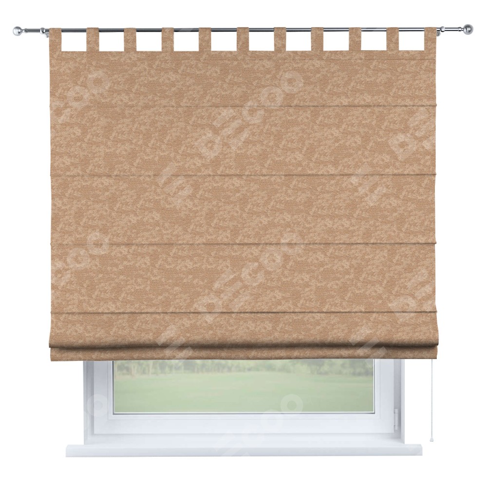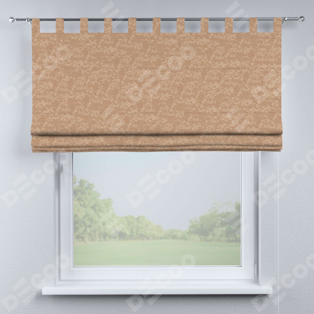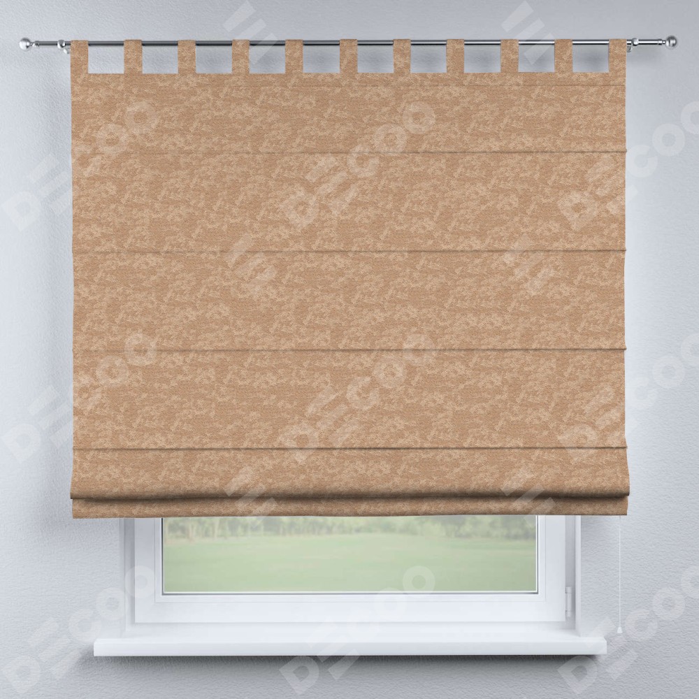 Римская штора производителя «Cortin», используется для проёма, пошита из ткани софт мрамор бронзовый, артикул ткани 93576. Данная модель пошита на петлях, комплектуется на выбор круглым карнизом и подходит для монтажа на стену. Римская штора на петлях имеет простую систему регулировки высоты, отличительным преимуществом данной модели является простой способ монтажа. Достаточно повесить ее на трубу и штора готова!