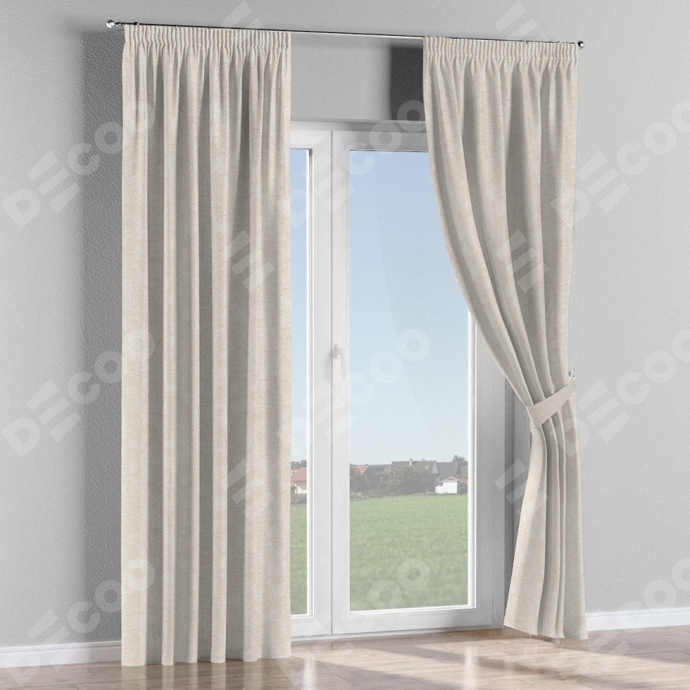 Комплект прямых штор, от производителя «Cortin», пошиты из ткани софт мрамор кремовый, артикул ткани 93574. С изнаночной стороны в верхней части штор пристрачивается шторная лента с декоративными складками «Карандаш». Для создания элегантных складок прямые шторы шьются по стандарту с коэффициентом 1:2 (на 100 см. ширины проёма 200 см. ширины ткани).