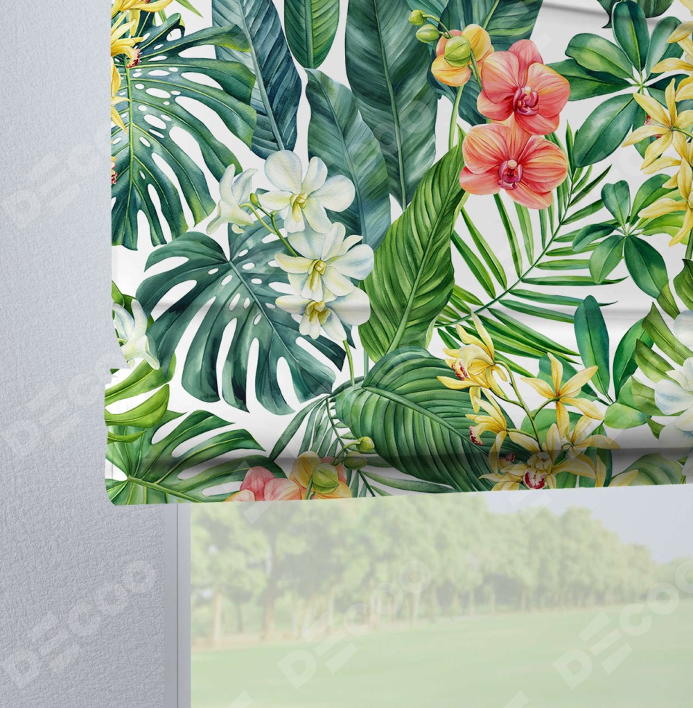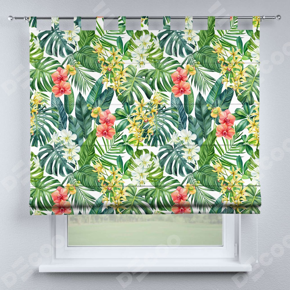 Римская штора производителя «Cortin», используется для проёма, пошита из ткани блэкаут с нанесением сублимационной печати «Орхидеи в тропиках». Данная модель пошита на петлях, комплектуется на выбор круглым карнизом и подходит для монтажа на стену. Римская штора на петлях имеет простую систему регулировки высоты, отличительным преимуществом данной модели является простой способ монтажа. Достаточно повесить ее на трубу и штора готова!