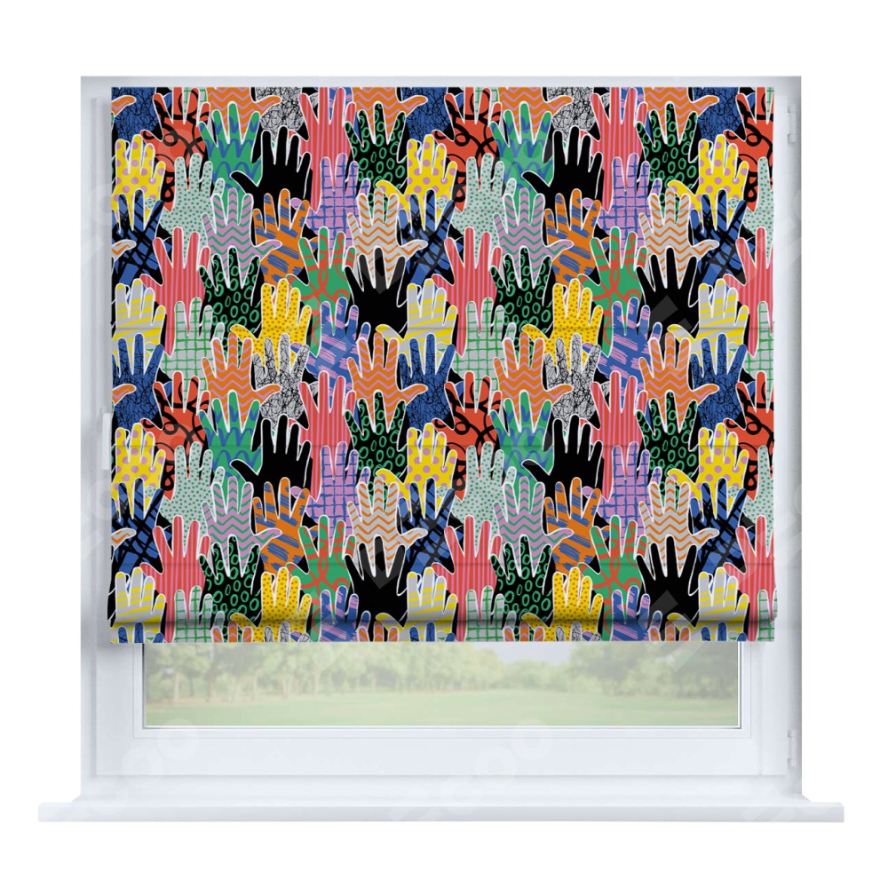 Римская штора производителя «Cortin», устанавливается на створку окна, пошита из ткани блэкаут с нанесением сублимационной печати «Коллаж поп-арт». Штора шьётся по индивидуальным размерам, для данного типа римской шторы возможная ширина от 35 до 150 см., высота до 250 см.