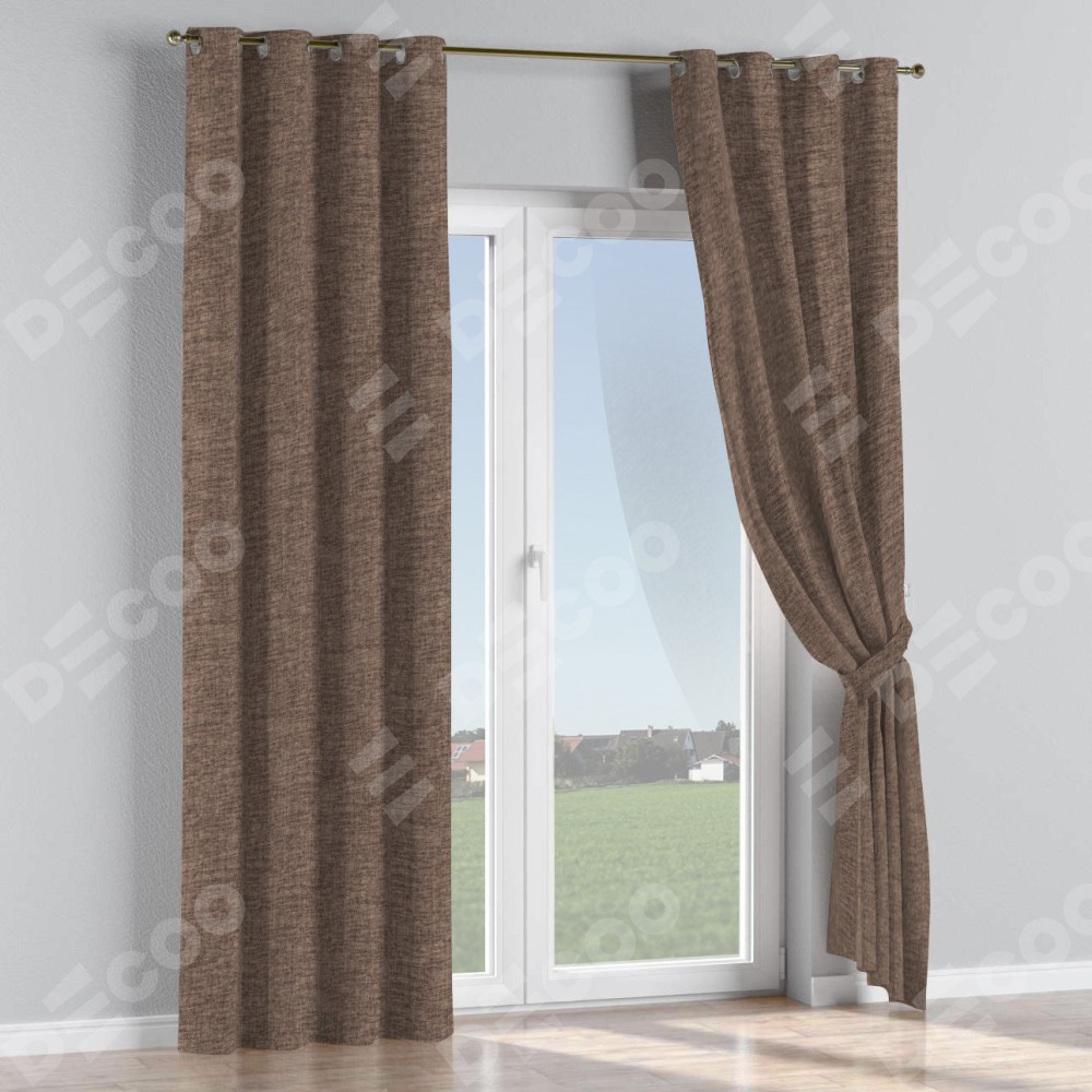 Комплект прямых штор, от производителя «Cortin», пошиты из ткани рогожка димаут коричневый, артикул ткани 91018. Данная модель пошита на люверсах, комплектуется на выбор круглым карнизом и подходит для монтажа на стену или потолок. Прямые шторы на люверсах шьются по стандарту с коэффициентом 1/2 (на 100 см. ширины проёма 200 см. ширины ткани), отличительным преимуществом данной модели является простой способ монтажа. Достаточно повесить ее на трубу и штора готова!