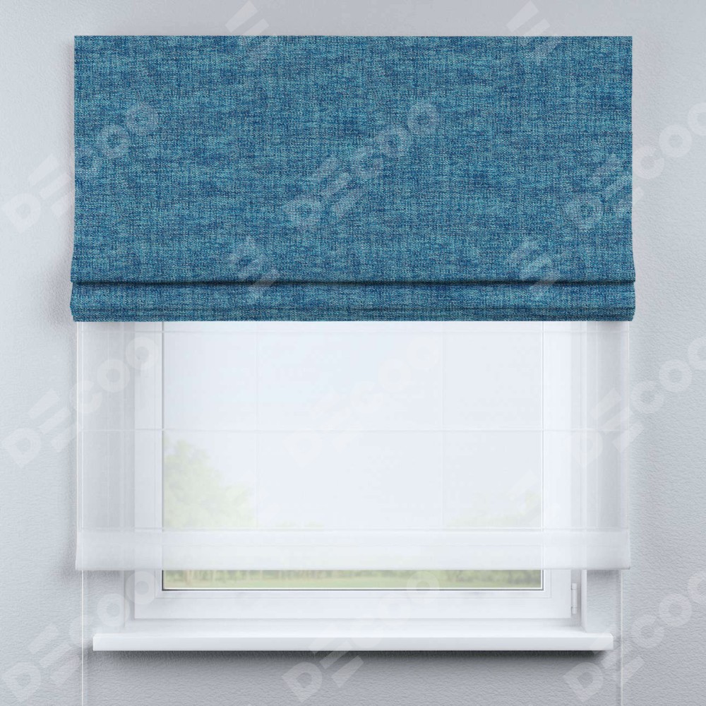 Римская штора «Кортин», рогожка димаут лазурно-синий, день-ночь