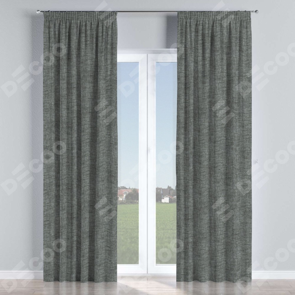 Комплект прямых штор, от производителя «Cortin», пошиты из ткани рогожка димаут тёмно-серый, артикул ткани 91029. С изнаночной стороны в верхней части штор пристрачивается шторная лента с декоративными складками «Карандаш». Для создания элегантных складок прямые шторы шьются по стандарту с коэффициентом 1:2 (на 100 см. ширины проёма 200 см. ширины ткани).