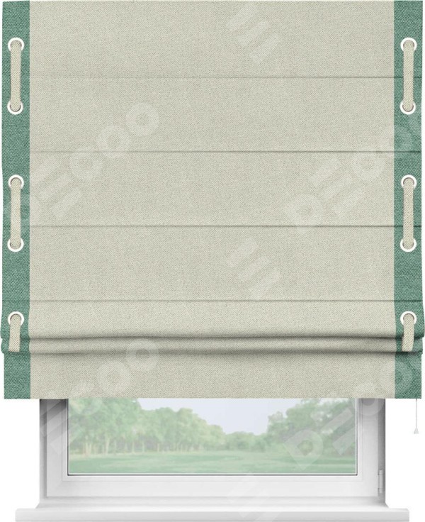 Декоративные люверсы на кантах могут выполнять как чисто украшательную функцию, так и быть частью механизма для протягивания декоративного пояска, что добавляет изделию уникальности и игривости. Поясок из основного цвета римской шторы, протянутый через люверсы, не только укрепляет вертикальную композицию, но и позволяет создавать различные драпировки, регулируя внешний вид шторы по желанию.
