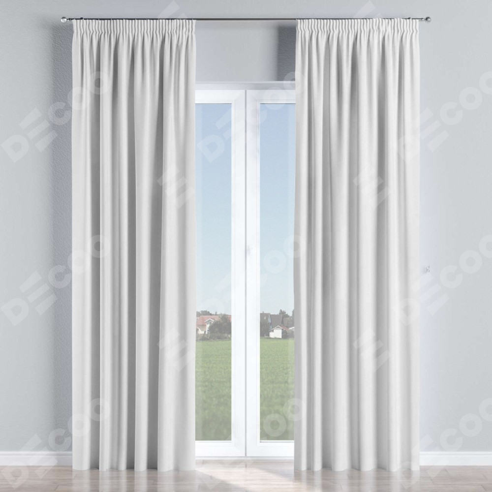 Комплект прямых штор, от производителя «Cortin», пошиты из ткани лён белоснежный, артикул ткани 95632. С изнаночной стороны в верхней части штор пристрачивается шторная лента с декоративными складками «Карандаш». Для создания элегантных складок прямые шторы шьются по стандарту с коэффициентом 1:2 (на 100 см. ширины проёма 200 см. ширины ткани).