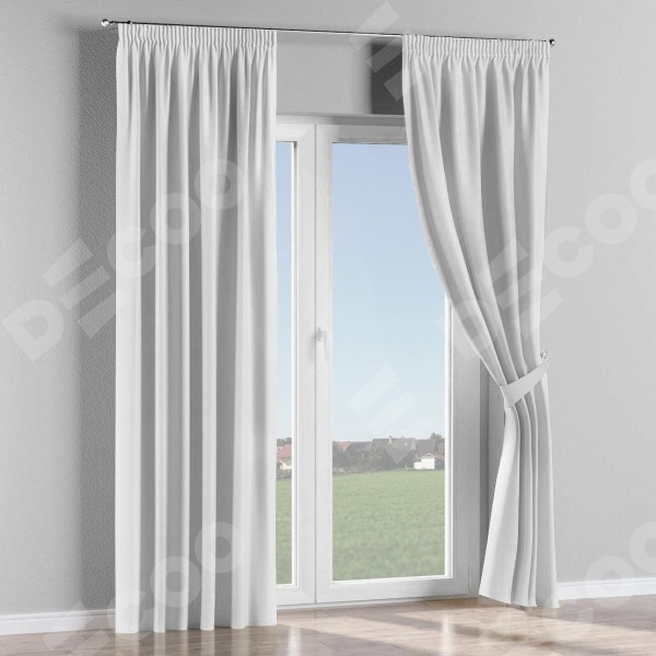 Комплект прямых штор, от производителя «Cortin», пошиты из ткани вельвет белоснежный, артикул ткани 92698. С изнаночной стороны в верхней части штор пристрачивается шторная лента с декоративными складками «Карандаш». Для создания элегантных складок прямые шторы шьются по стандарту с коэффициентом 1:2 (на 100 см. ширины проёма 200 см. ширины ткани).