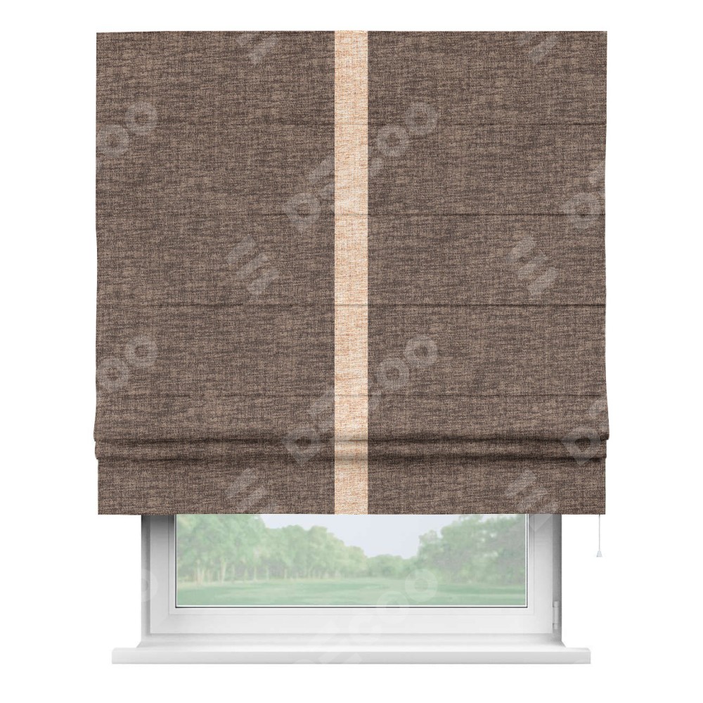 Римская штора «Кортин» для проёма, рогожка димаут коричневый, с кантом Хайвэй